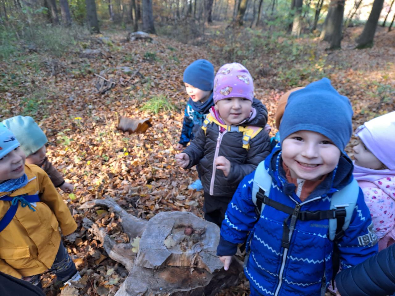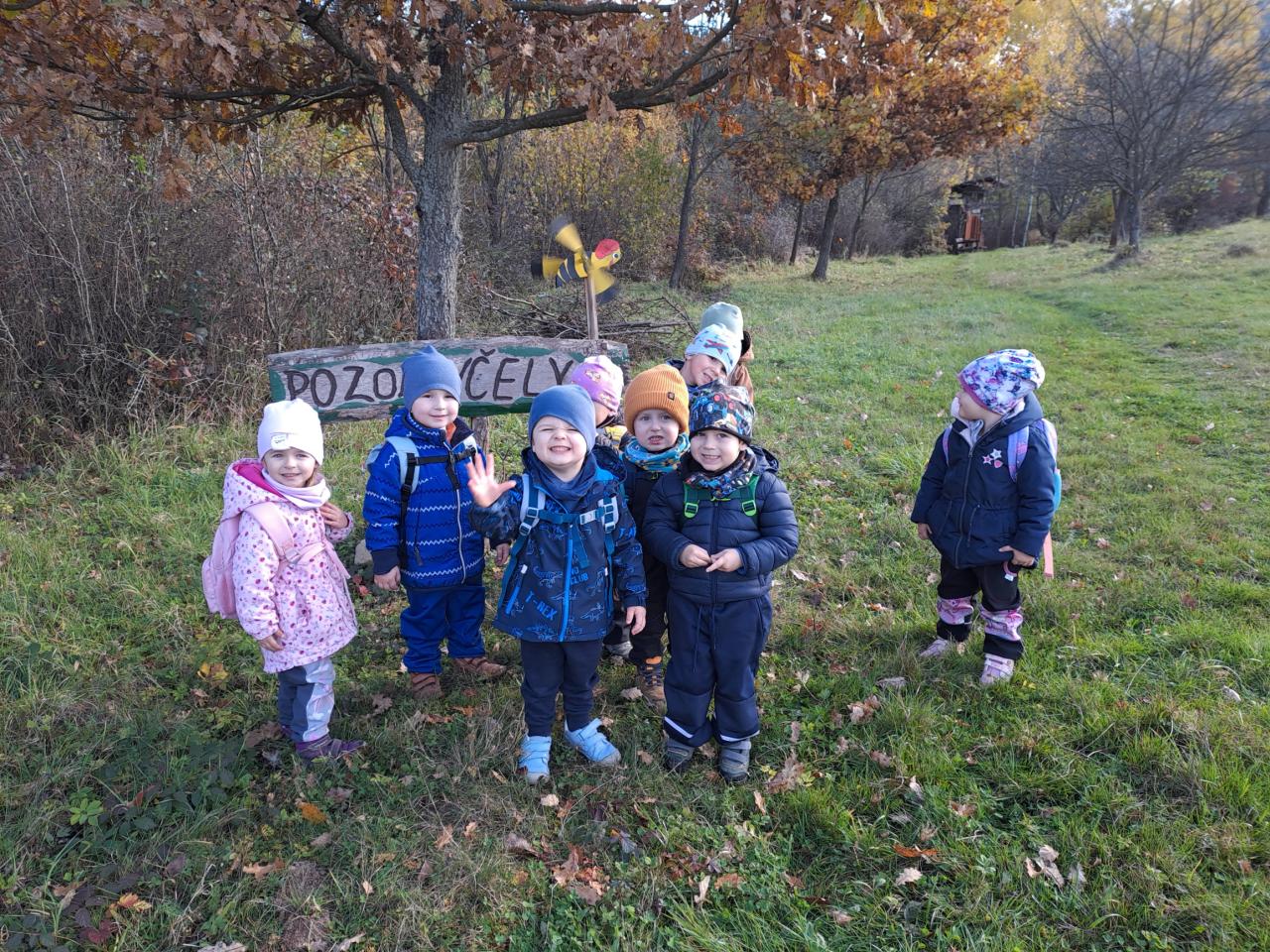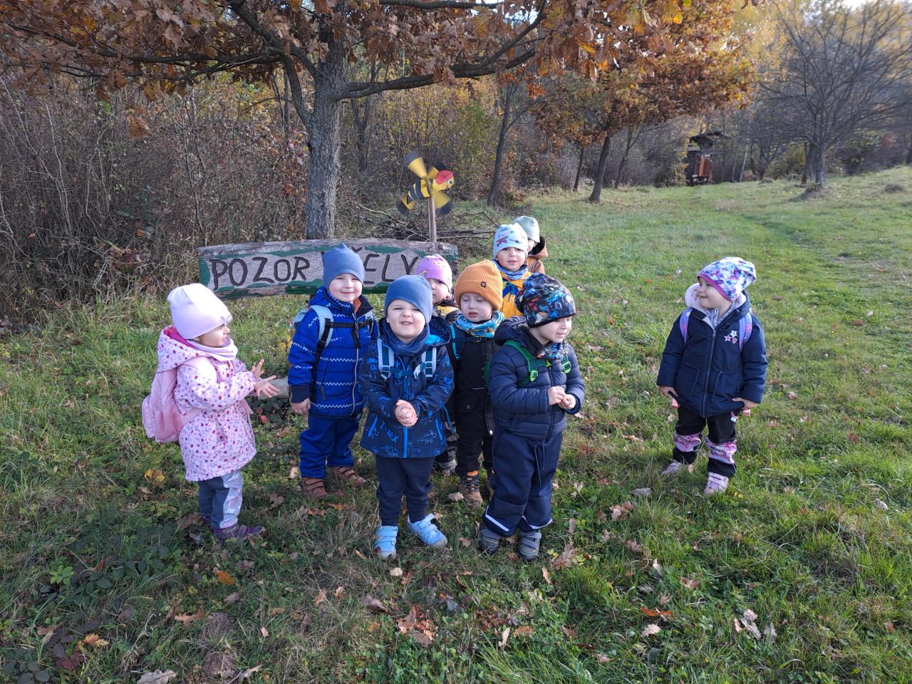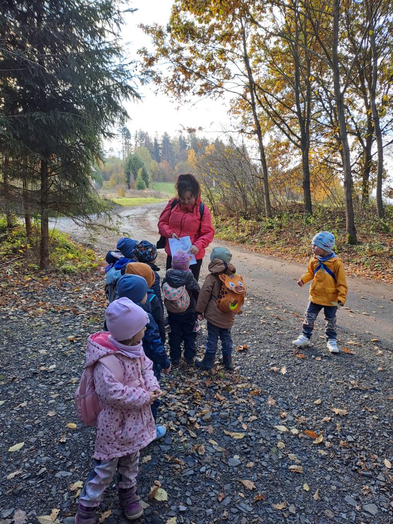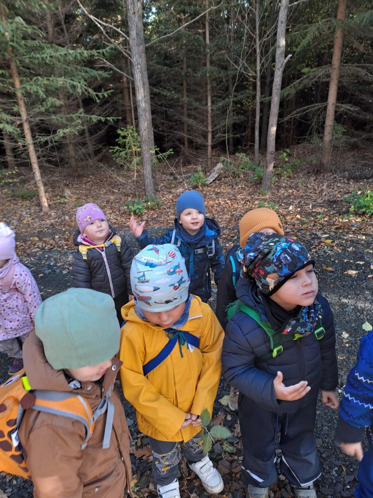 V rámci týdenního tématu "Podzim v lese" jsme si povídali o houbách a zvířátkách. Podzimní téma jsme završili vycházkou do lesa, při které jsme plnili stanoviště s úkoly, související s podzimem.