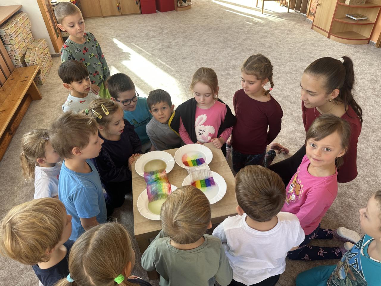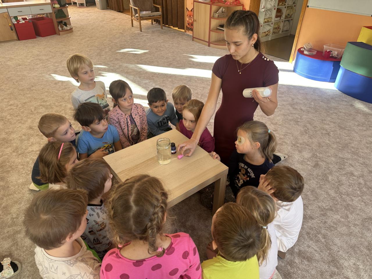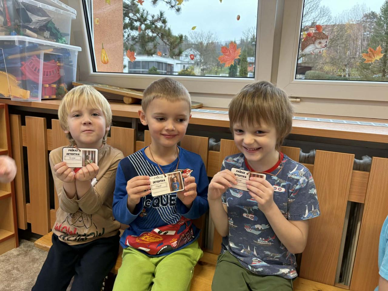 V listopadu jsme si povídali s dětmi o počasí, děti si vyzkoušely různé pokusy. Uložili jsme zvířátka k zimnímu spánku. Také jsme poznávali jedlé a jedovaté plody, děti si zahrály na detektivy. Stihli jsme si pustit draka a dokonce si užít i první sníh.