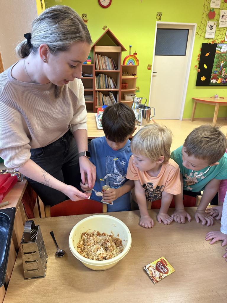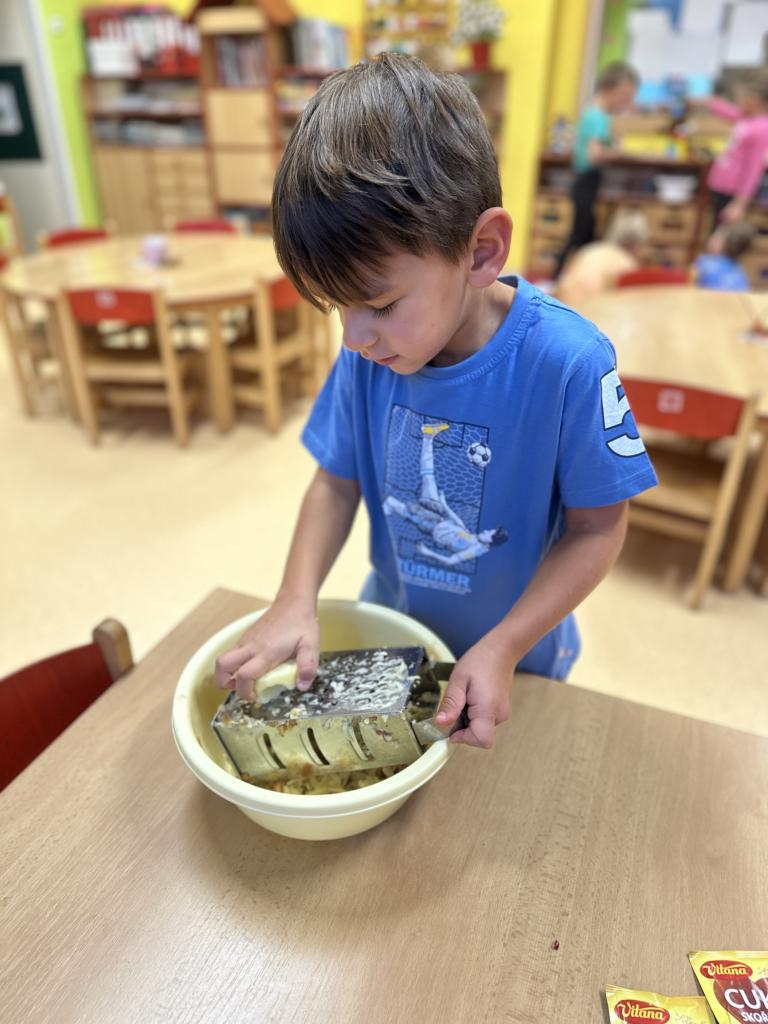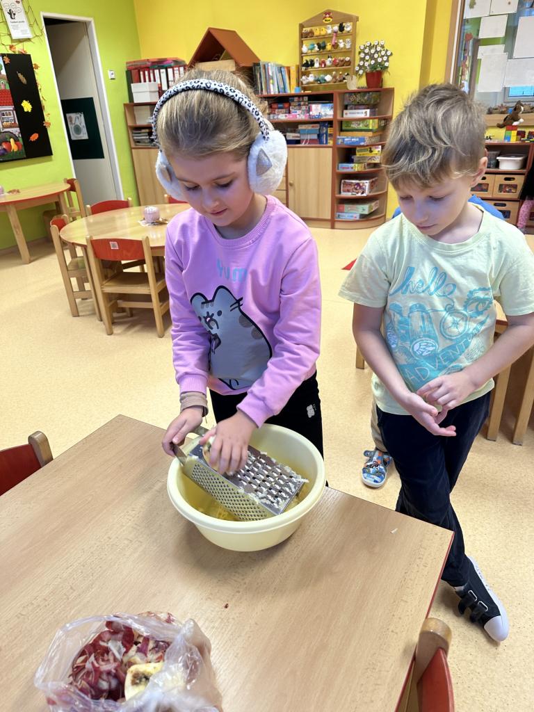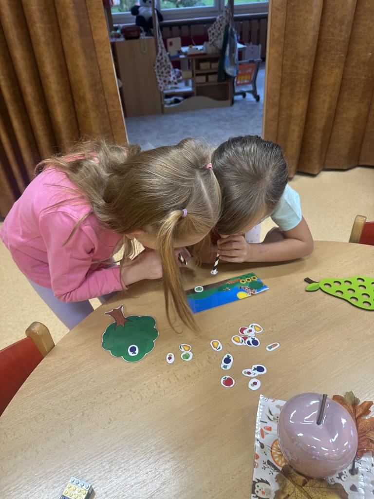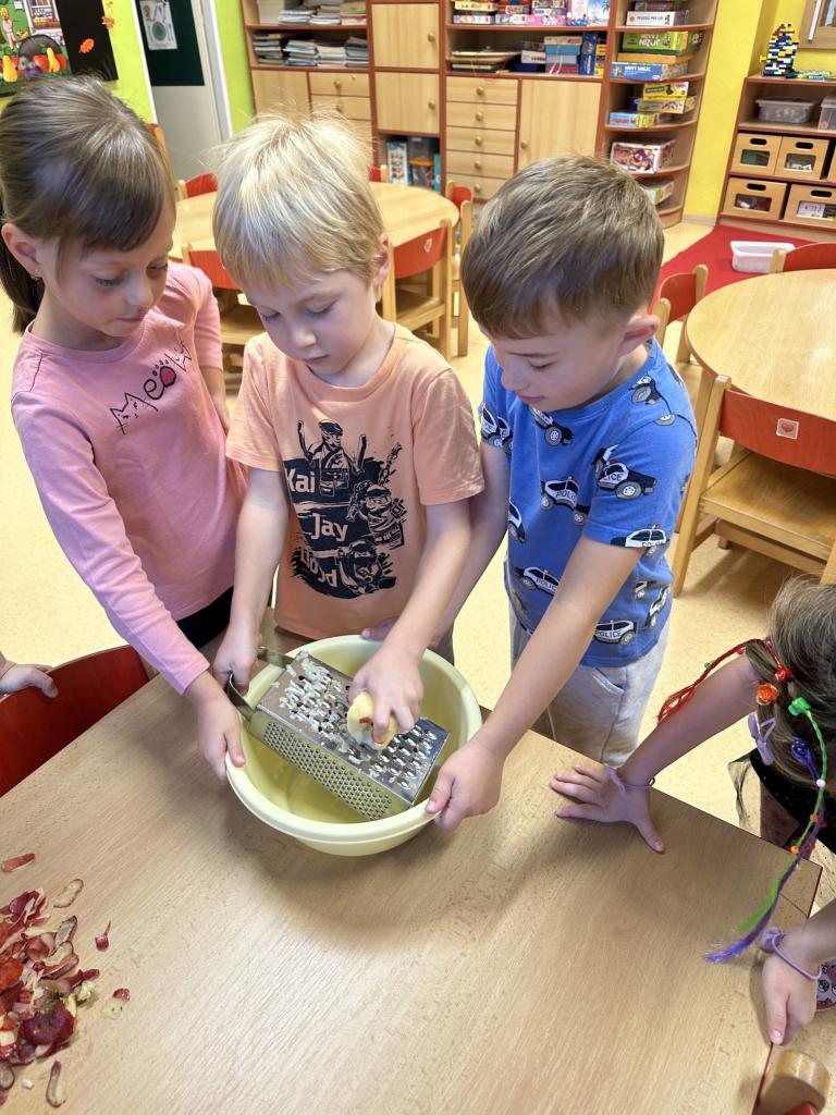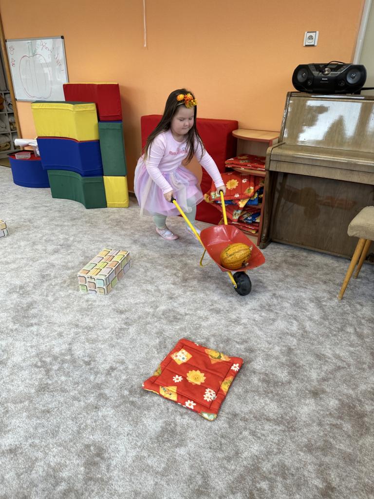 S dětmi jsme si ovocno- zeleninový týden užili. Děti v úterý připravovaly štrůdl, který nám šikovné paní kuchařky upekly. V rámci dýňového dne ve čtvrtek si děti vydlabávaly dýni a zasoutěžily si. Za odměnu jsme si s dětmi udělali diskotéku. Zahráli jsme si spolu spoustu pohybových her k tématu ovoce a zelenina. Naučili jsme se písničku "Podzimní zahrádka".
