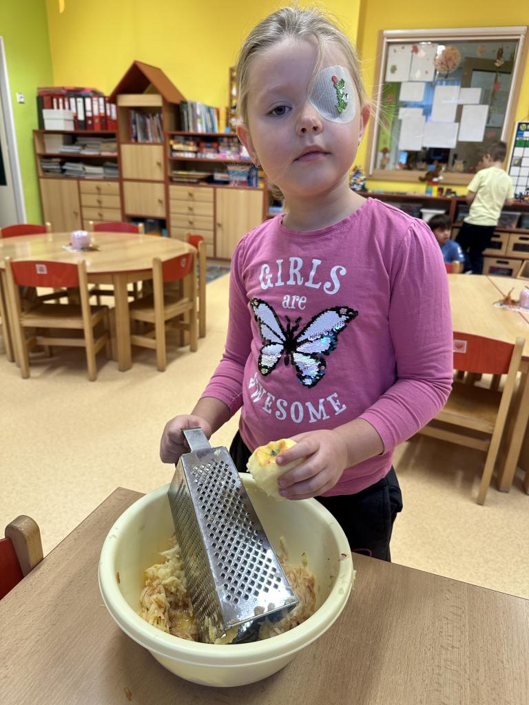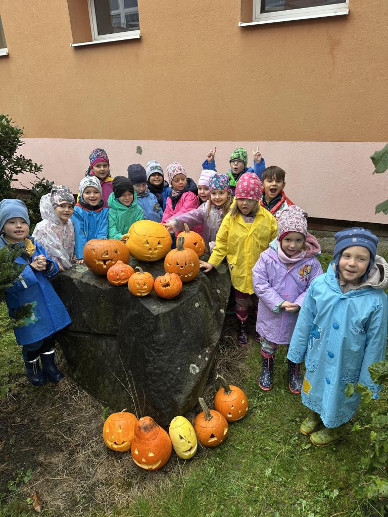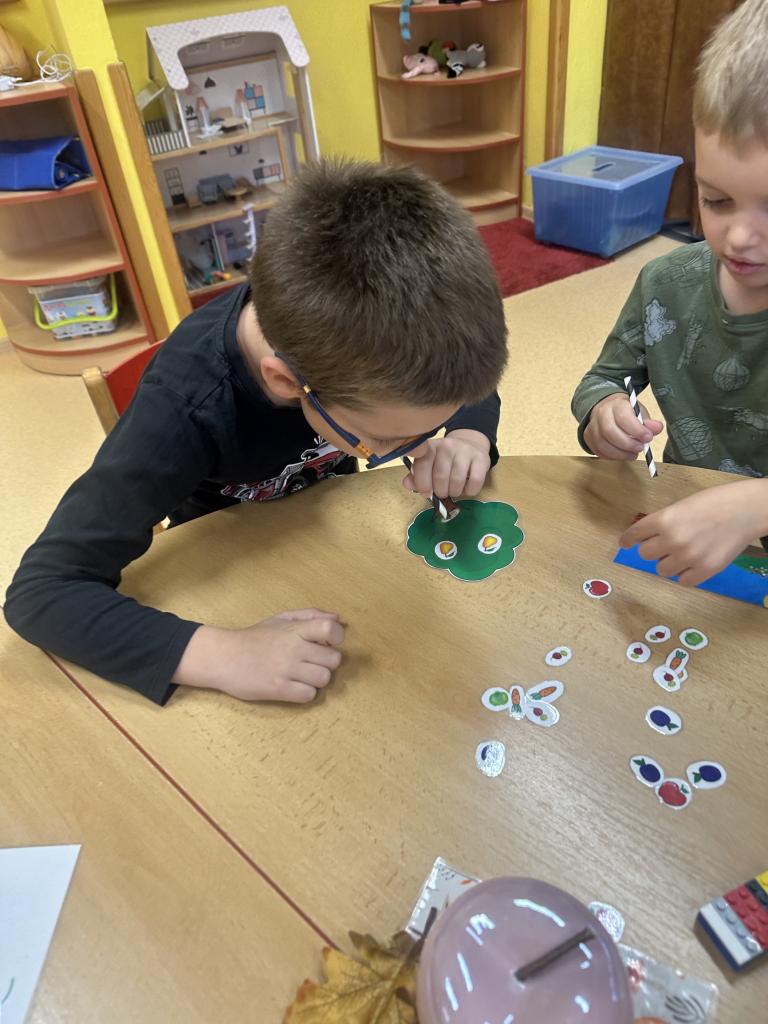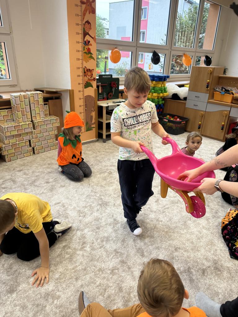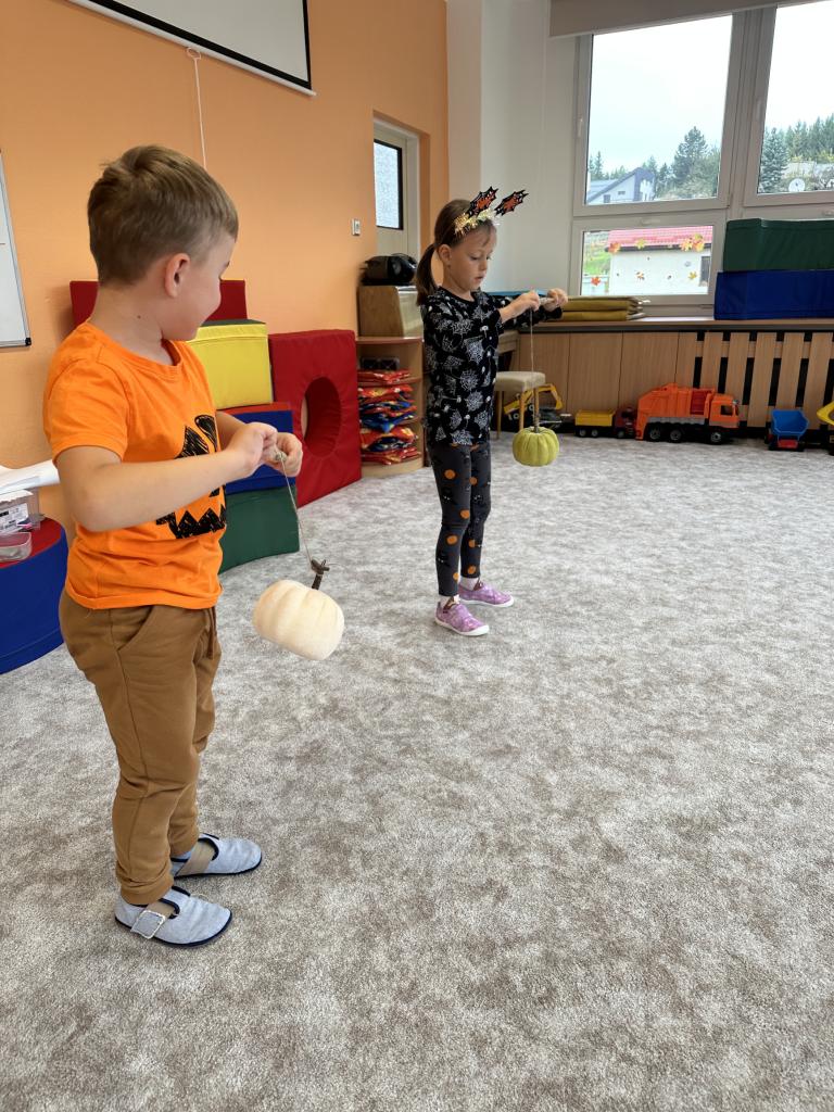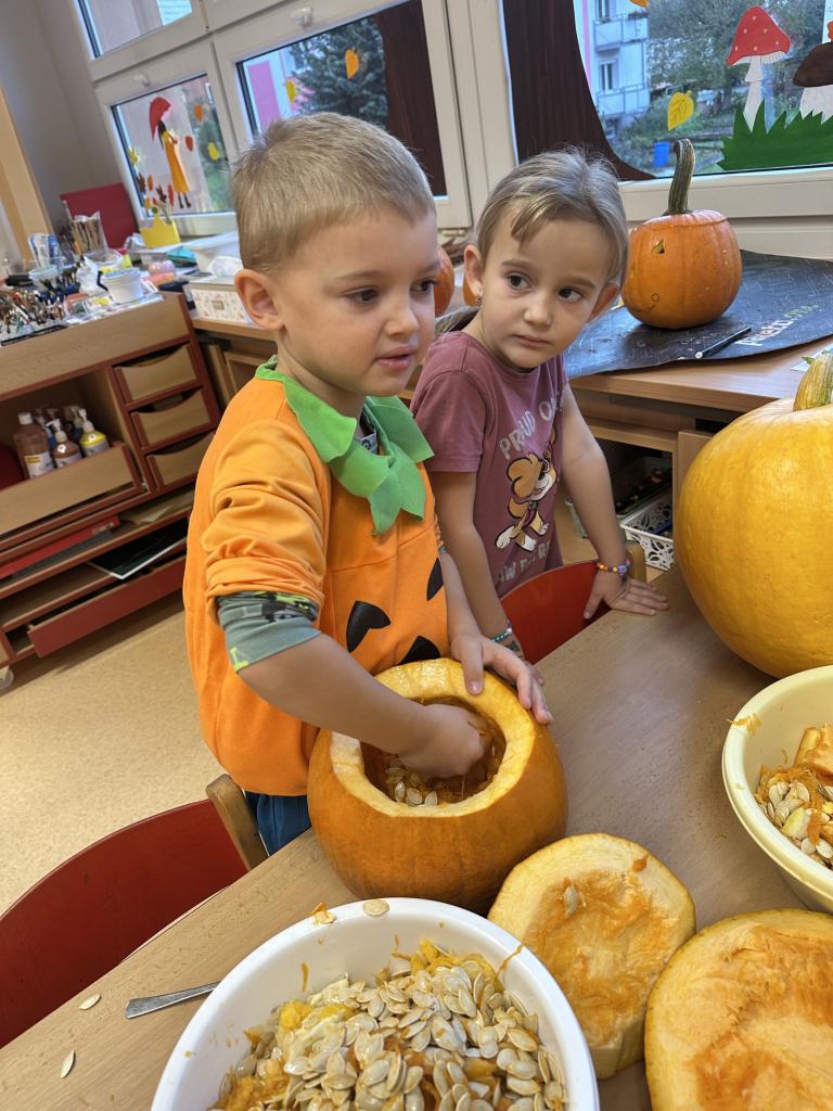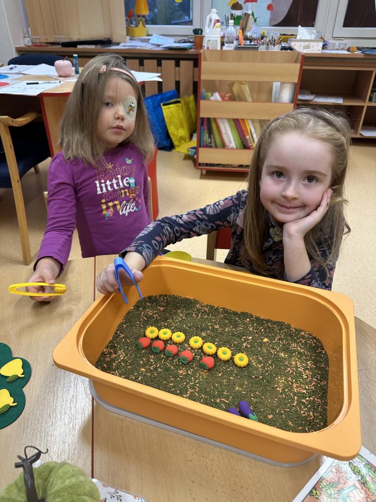 S dětmi jsme si ovocno- zeleninový týden užili. Děti v úterý připravovaly štrůdl, který nám šikovné paní kuchařky upekly. V rámci dýňového dne ve čtvrtek si děti vydlabávaly dýni a zasoutěžily si. Za odměnu jsme si s dětmi udělali diskotéku. Zahráli jsme si spolu spoustu pohybových her k tématu ovoce a zelenina. Naučili jsme se písničku "Podzimní zahrádka".