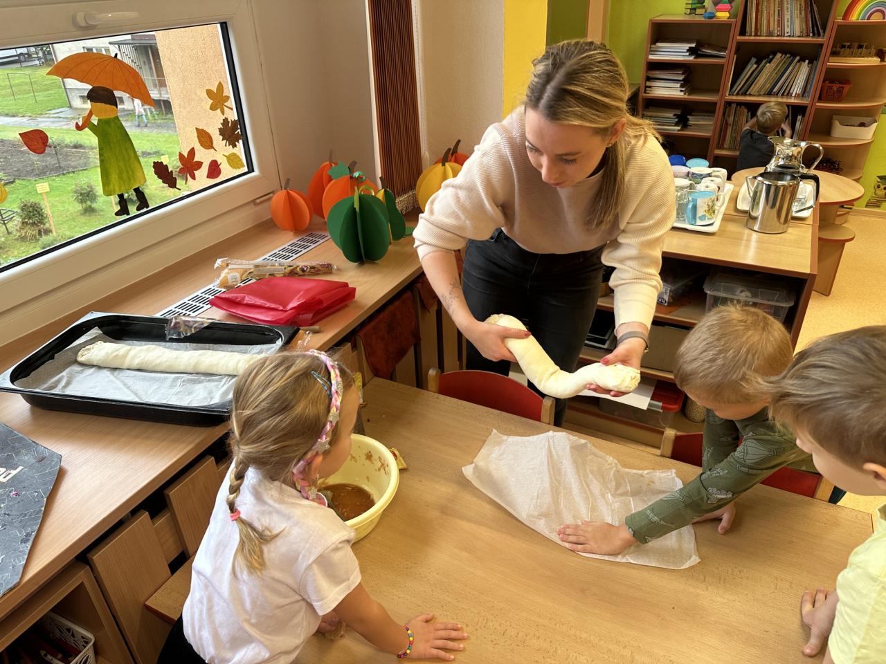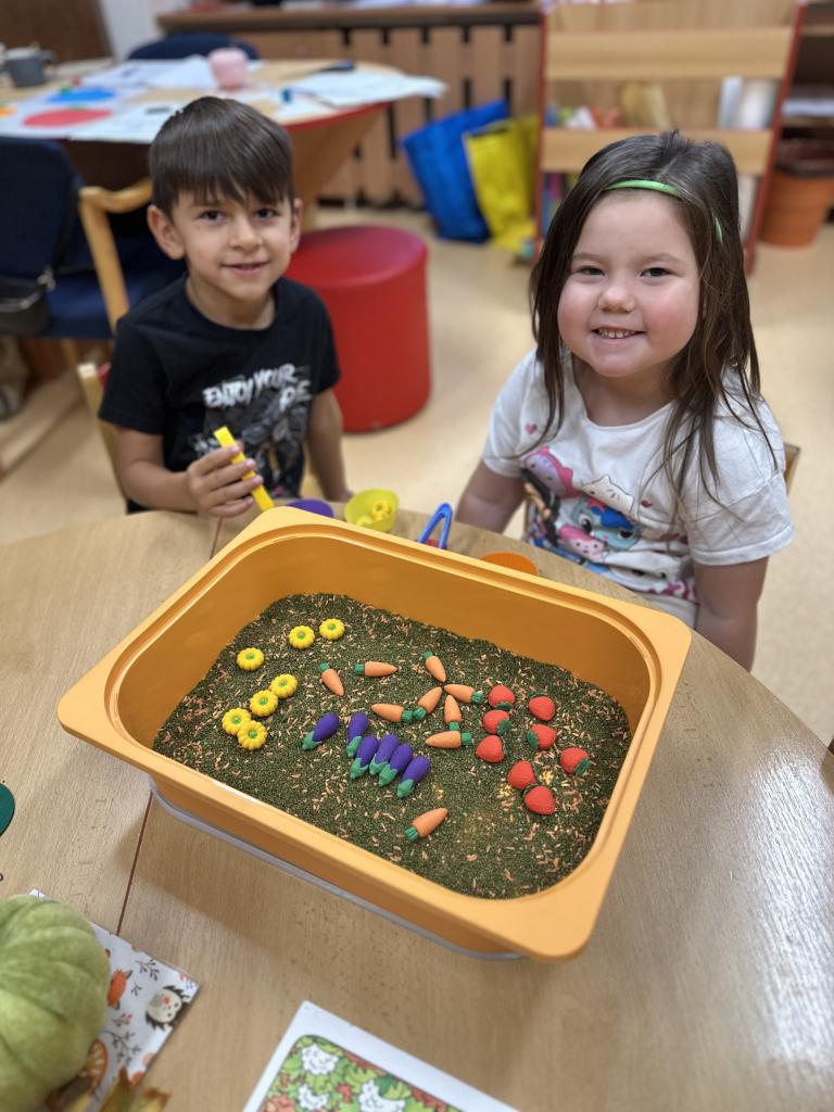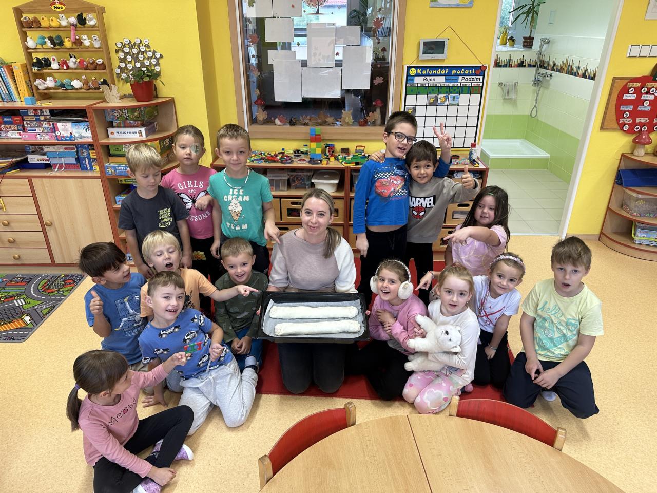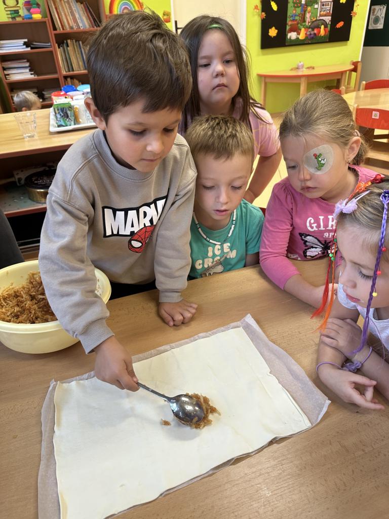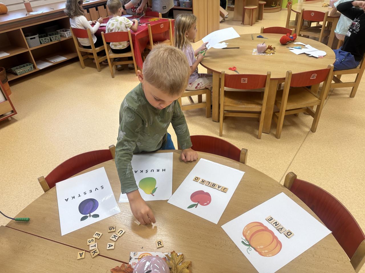 S dětmi jsme si ovocno- zeleninový týden užili. Děti v úterý připravovaly štrůdl, který nám šikovné paní kuchařky upekly. V rámci dýňového dne ve čtvrtek si děti vydlabávaly dýni a zasoutěžily si. Za odměnu jsme si s dětmi udělali diskotéku. Zahráli jsme si spolu spoustu pohybových her k tématu ovoce a zelenina. Naučili jsme se písničku "Podzimní zahrádka".