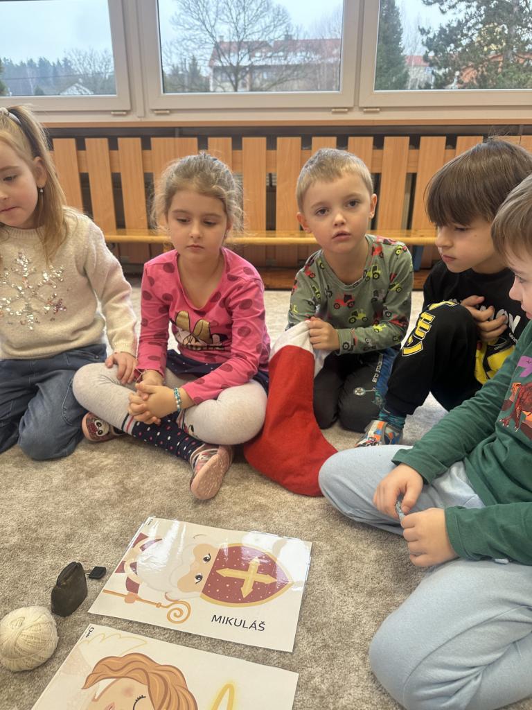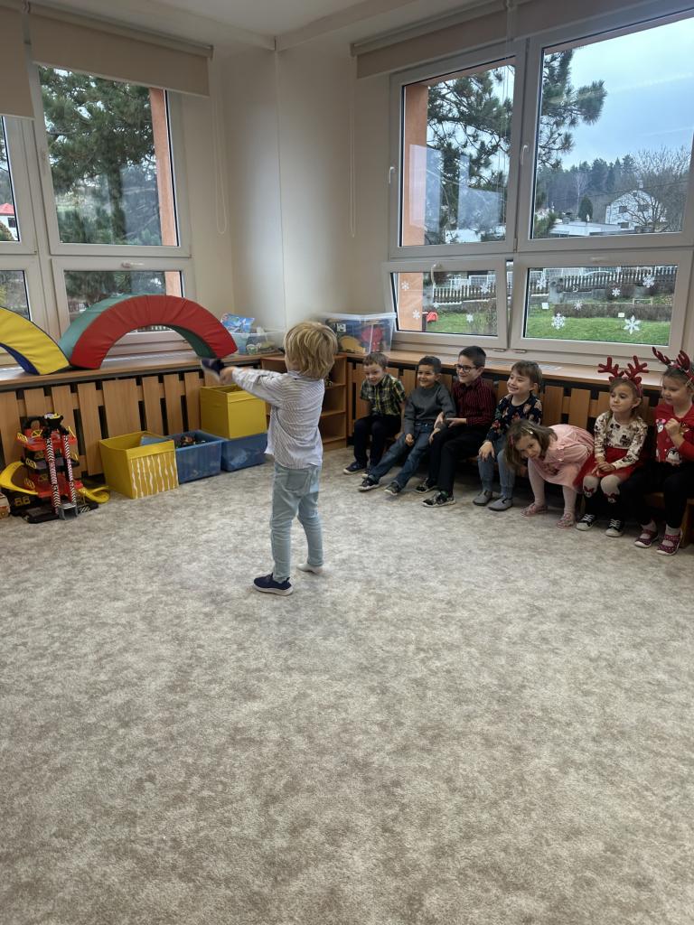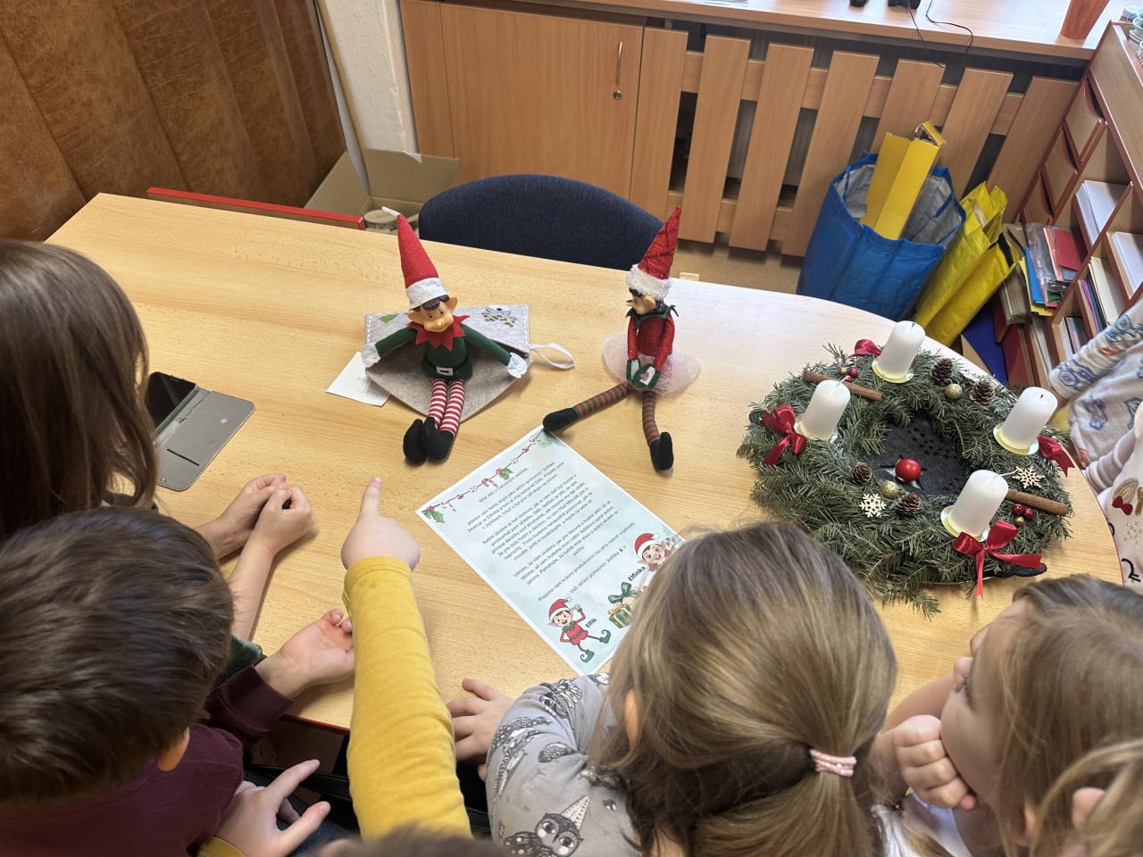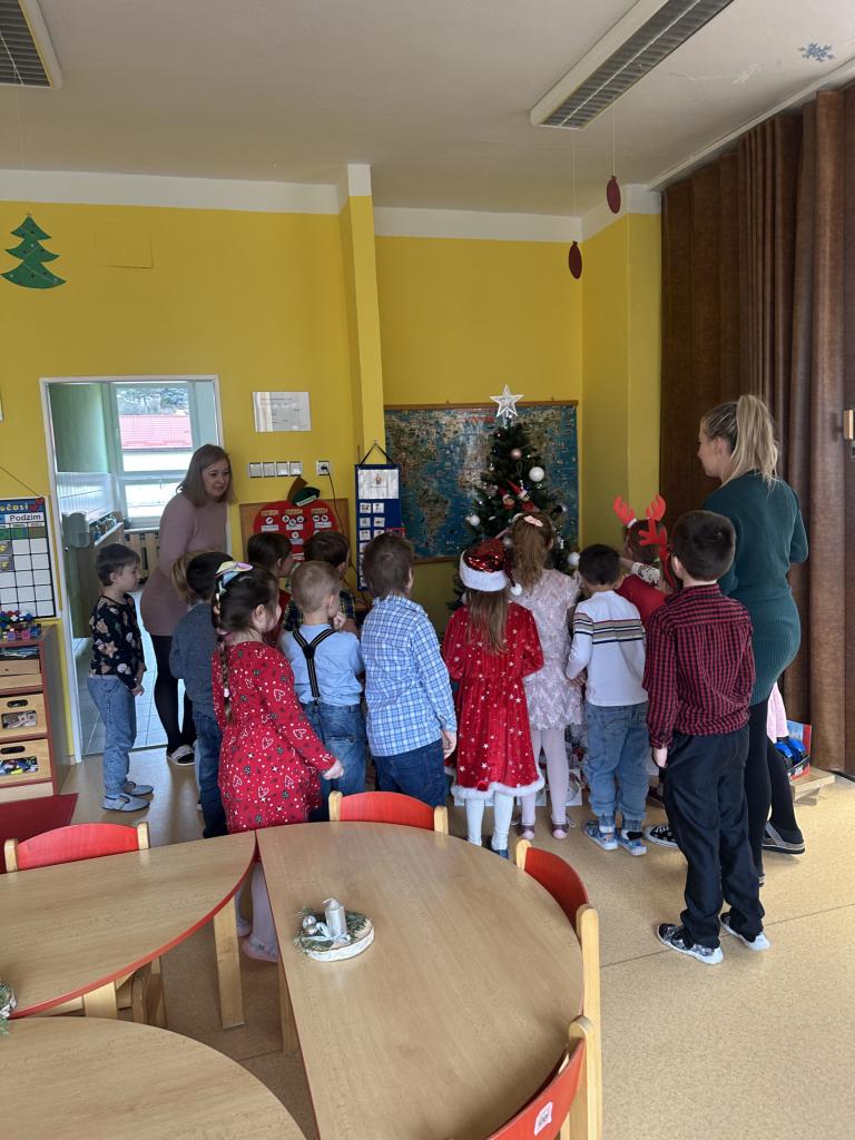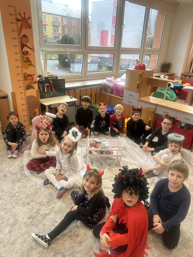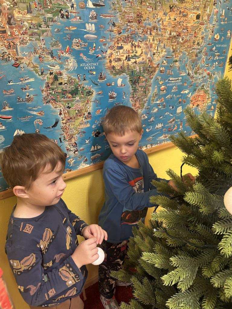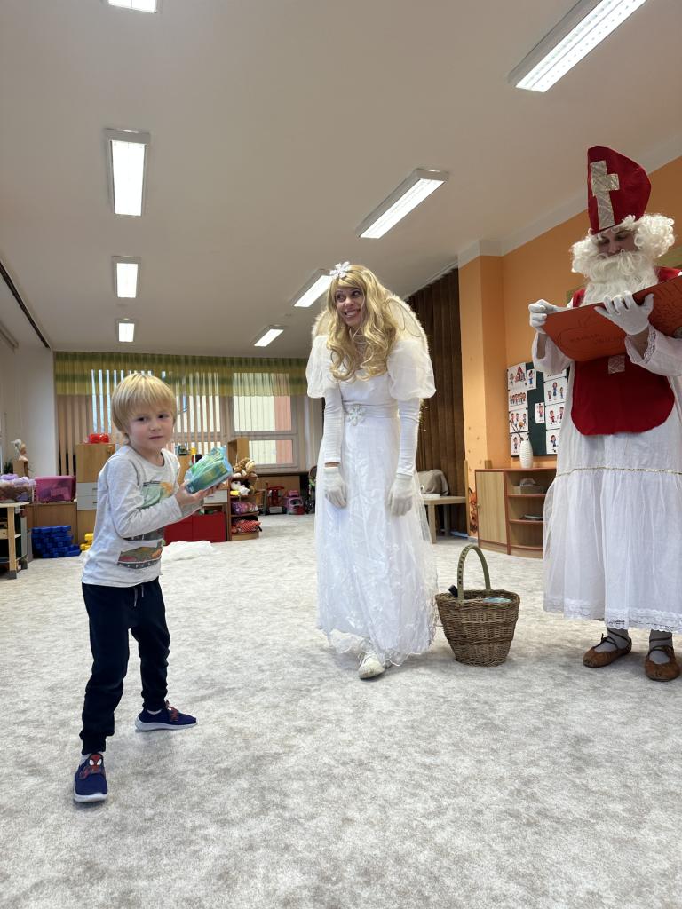Prosinec byl pro nás plný zážitků. Přišel k nám Mikuláš se svou družinou, naštěstí si nikoho z nás neodnesl čert. Děti také mohly přijít v kostýmu čertíka, anděla nebo Mikuláše. Společně jsme si užili krásné dopoledne plné her. Navštívili nás také skřítci - pomocníčci Ježíška. Skřítci kontrolovali, jestli si ve školce umí děti hezky hrát a pomáhat si. V předvánočním čase jsme se učili koledy, zkoušeli si různé tradice a čekali na příchod Ježíška. Užili jsme si spolu krásný adventní čas . Ježíšek k nám opravdu přletěl a přinesl nám překrásné dárečky.