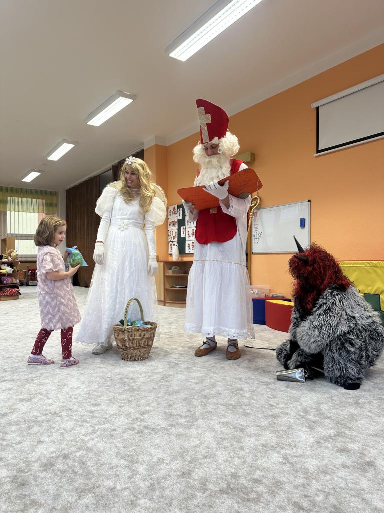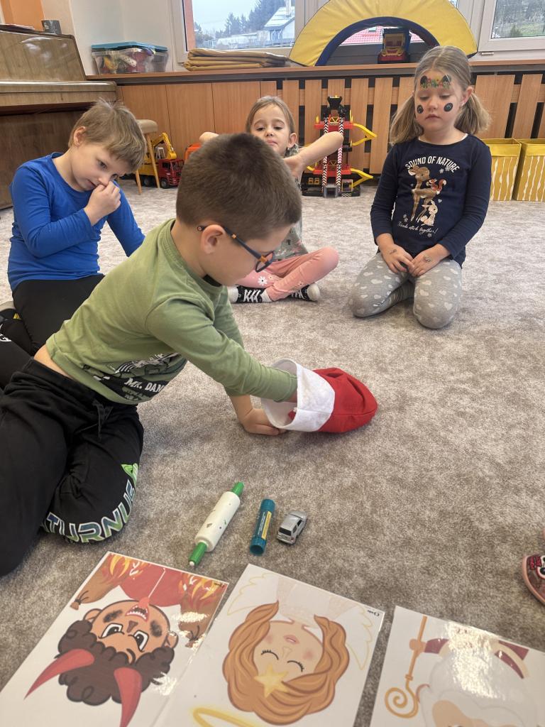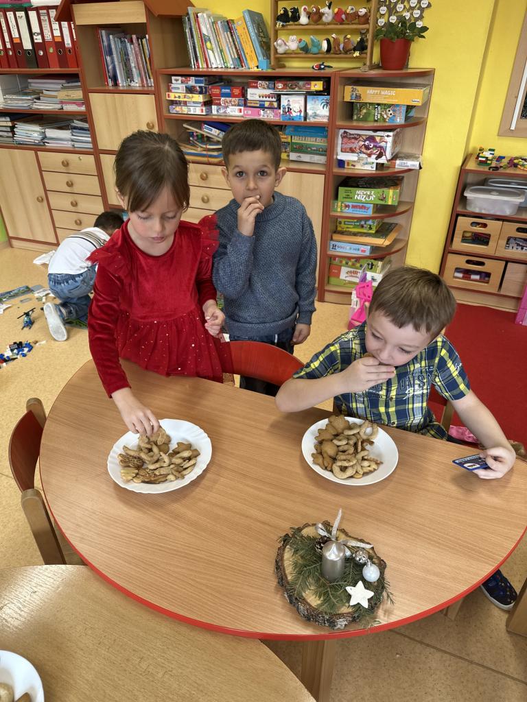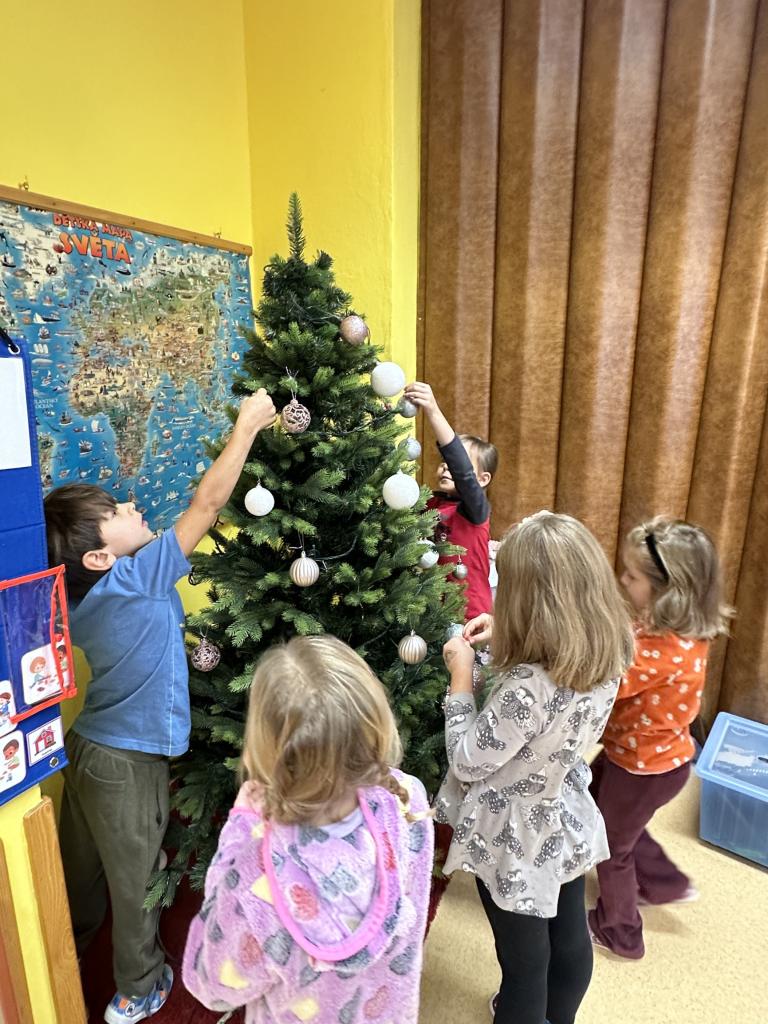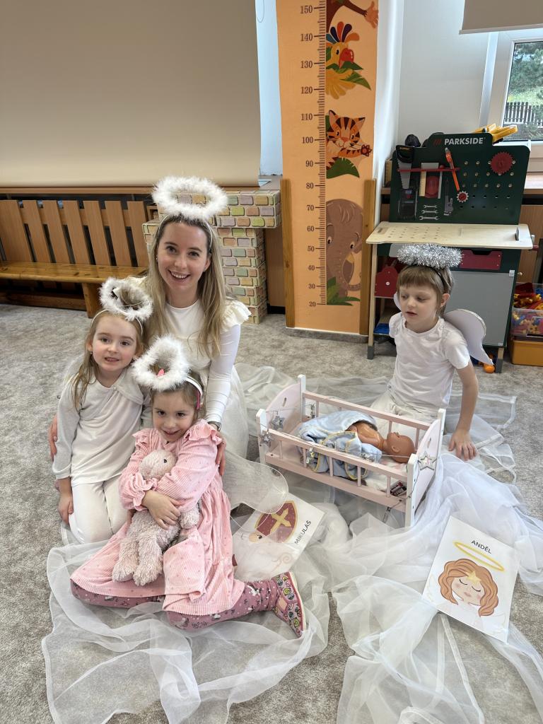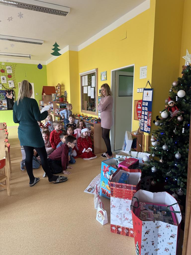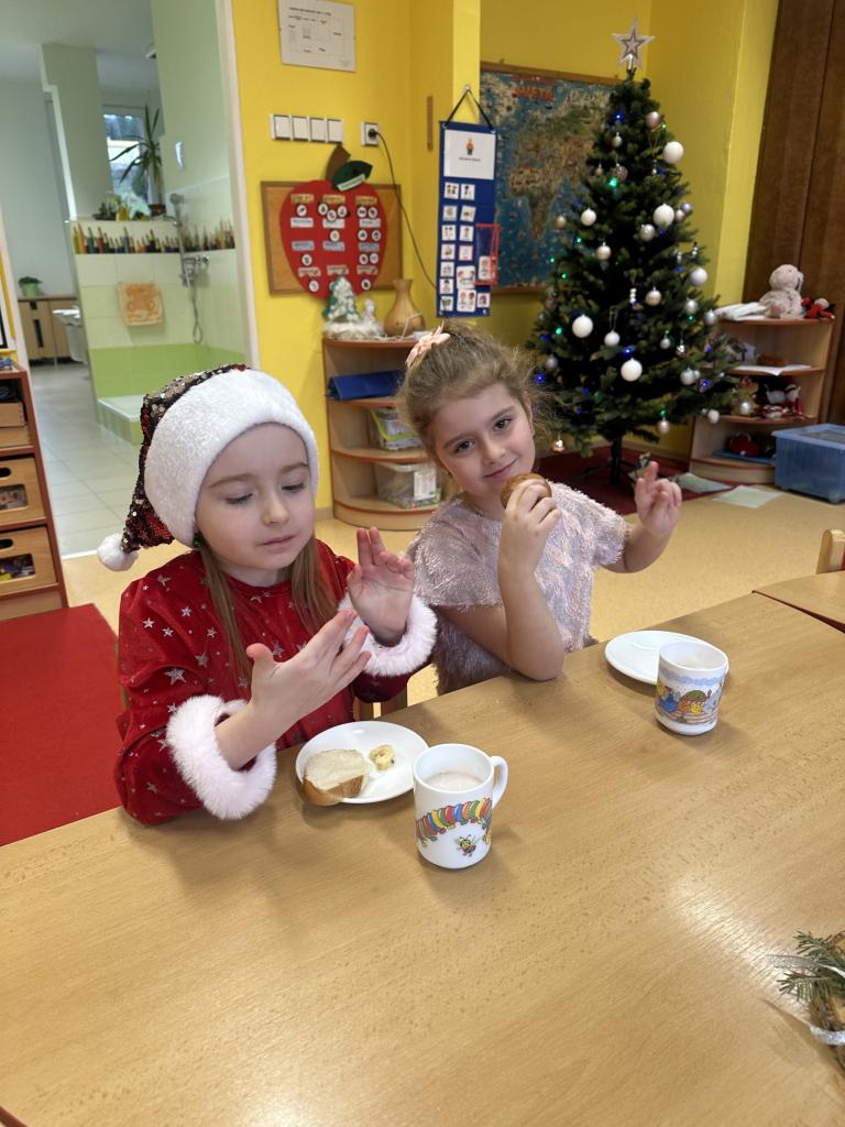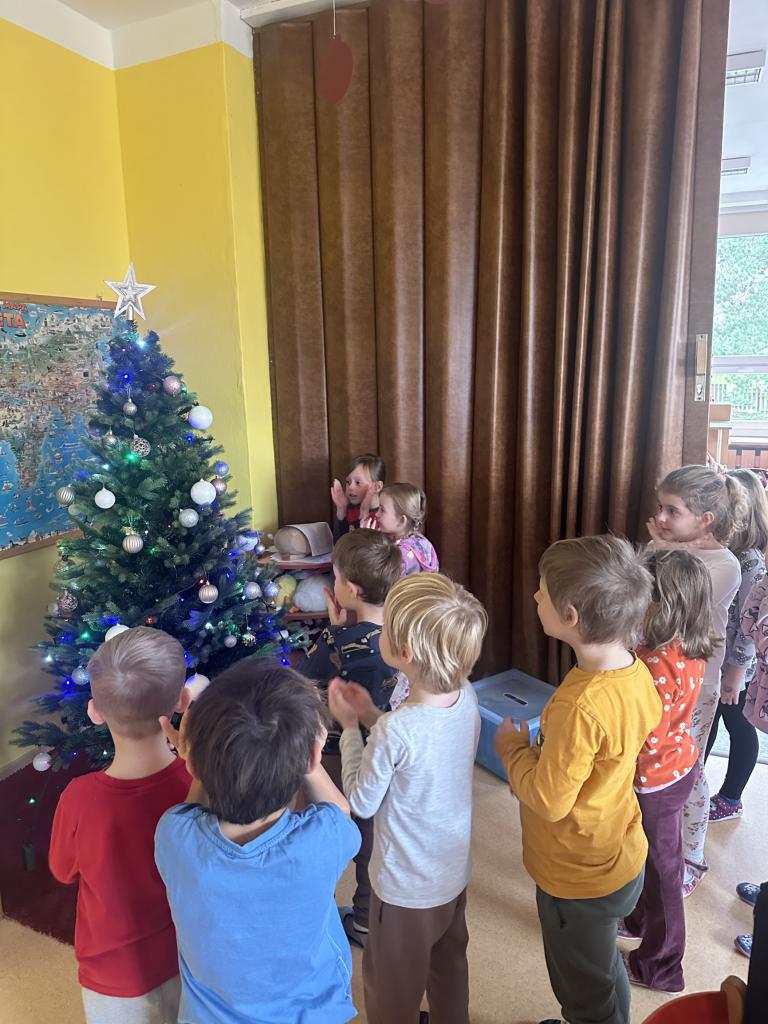 Prosinec byl pro nás plný zážitků. Přišel k nám Mikuláš se svou družinou, naštěstí si nikoho z nás neodnesl čert. Děti také mohly přijít v kostýmu čertíka, anděla nebo Mikuláše. Společně jsme si užili krásné dopoledne plné her. Navštívili nás také skřítci - pomocníčci Ježíška. Skřítci kontrolovali, jestli si ve školce umí děti hezky hrát a pomáhat si. V předvánočním čase jsme se učili koledy, zkoušeli si různé tradice a čekali na příchod Ježíška. Užili jsme si spolu krásný adventní čas . Ježíšek k nám opravdu přletěl a přinesl nám překrásné dárečky.