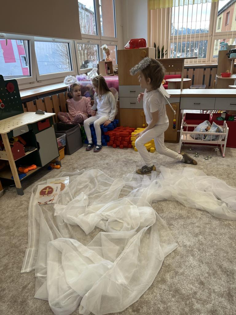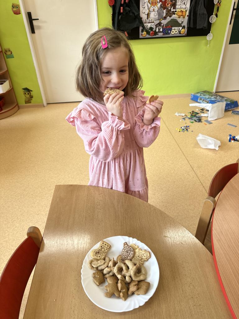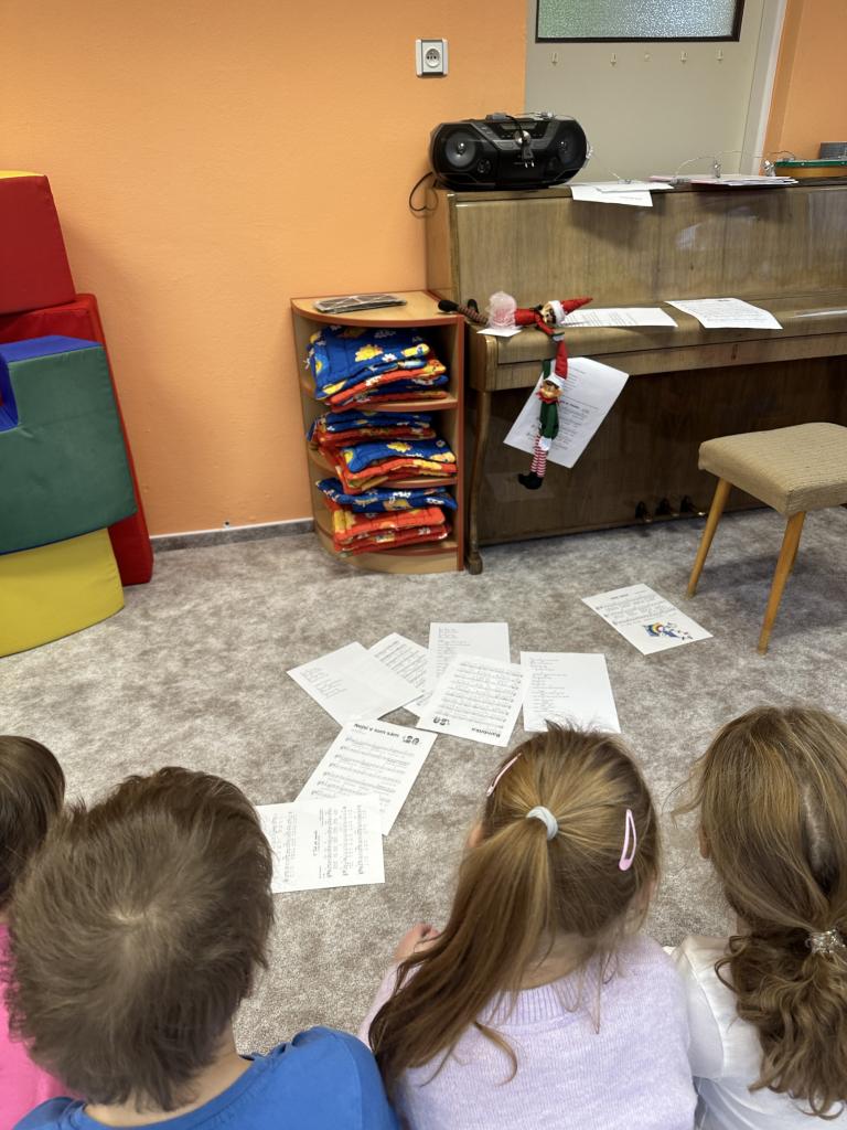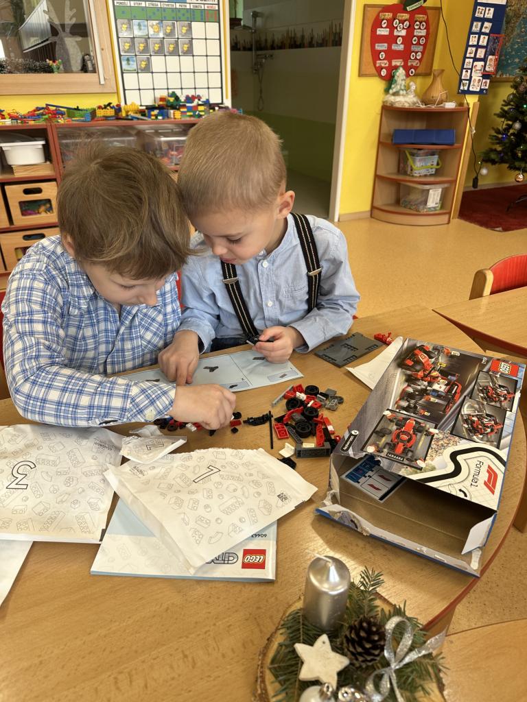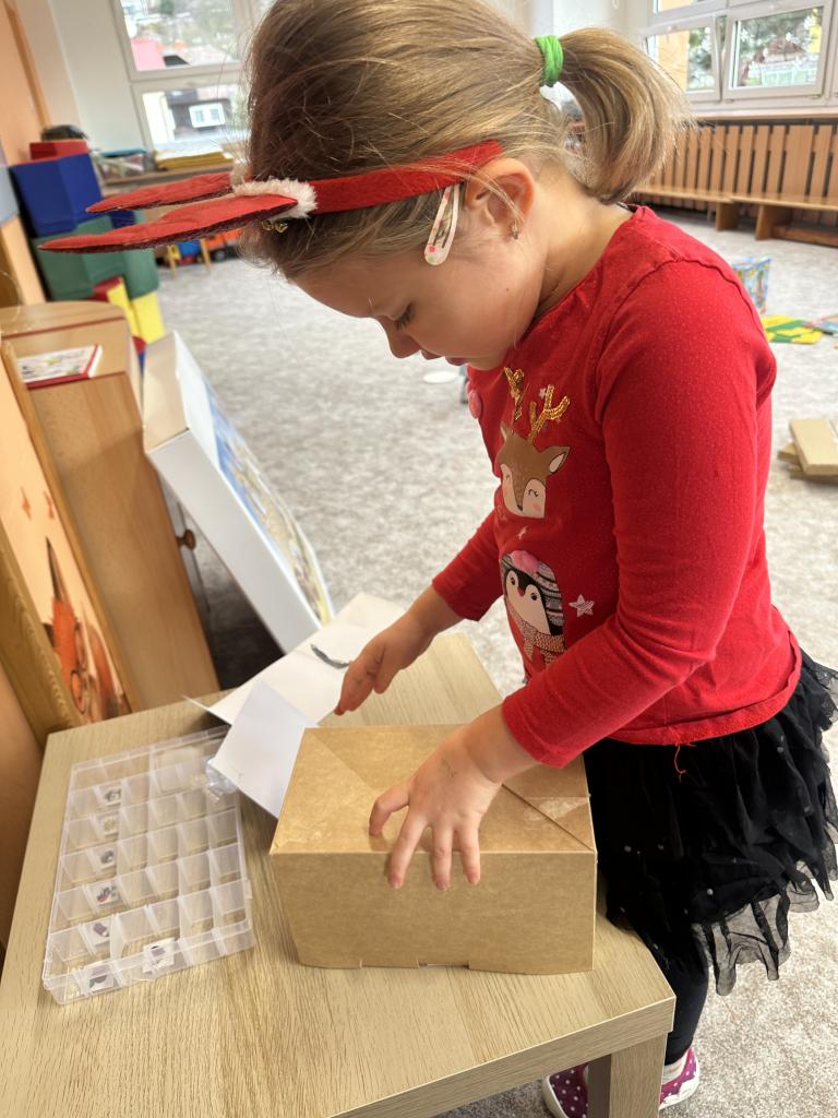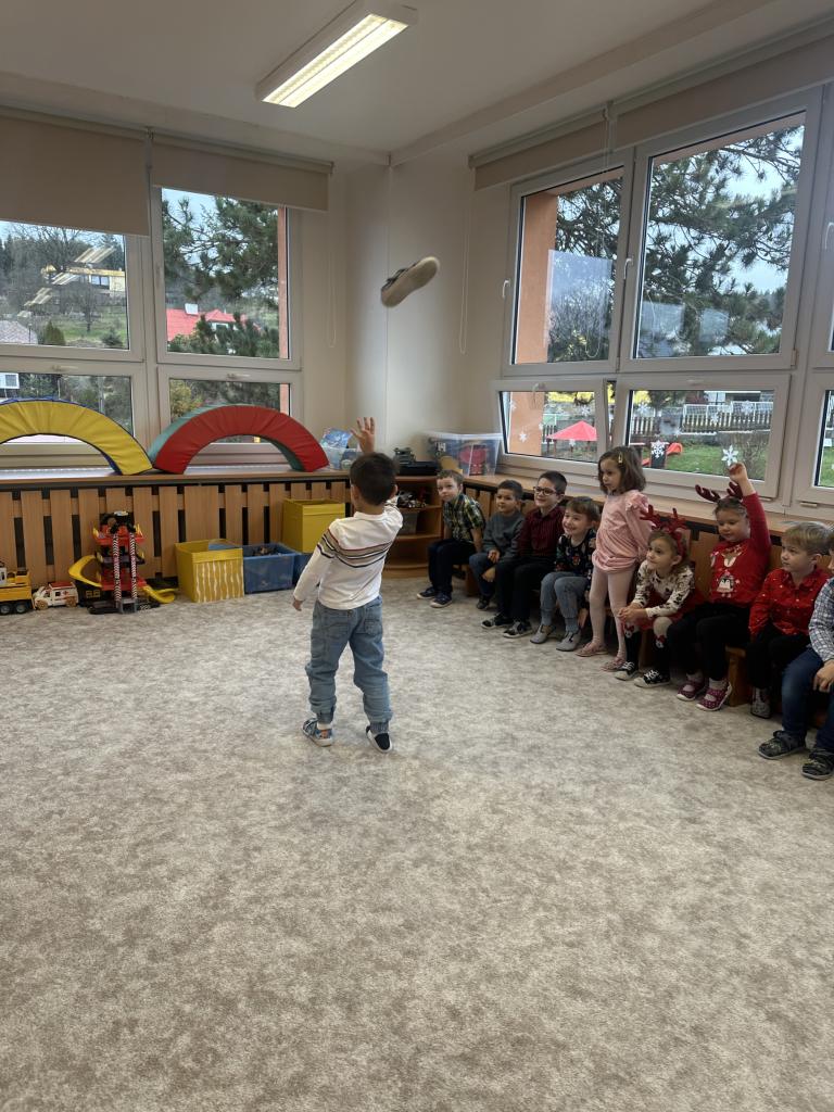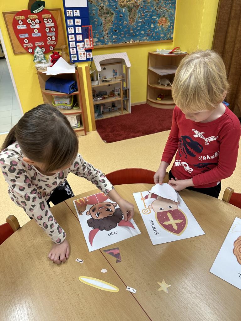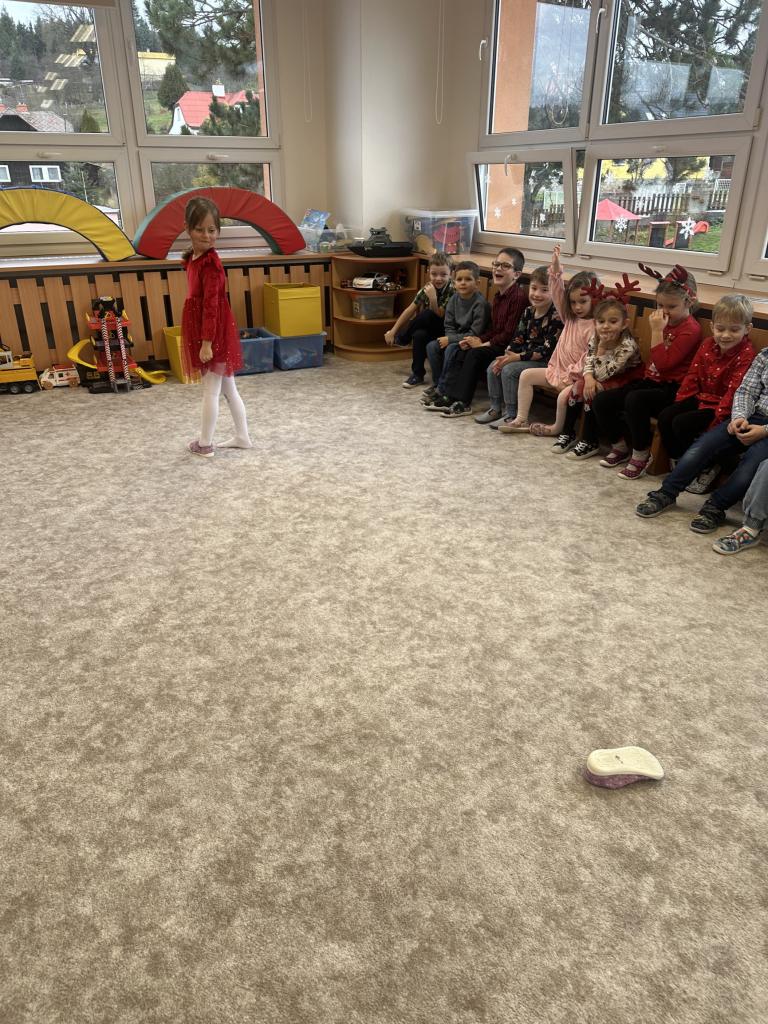 Prosinec byl pro nás plný zážitků. Přišel k nám Mikuláš se svou družinou, naštěstí si nikoho z nás neodnesl čert. Děti také mohly přijít v kostýmu čertíka, anděla nebo Mikuláše. Společně jsme si užili krásné dopoledne plné her. Navštívili nás také skřítci - pomocníčci Ježíška. Skřítci kontrolovali, jestli si ve školce umí děti hezky hrát a pomáhat si. V předvánočním čase jsme se učili koledy, zkoušeli si různé tradice a čekali na příchod Ježíška. Užili jsme si spolu krásný adventní čas . Ježíšek k nám opravdu přletěl a přinesl nám překrásné dárečky.