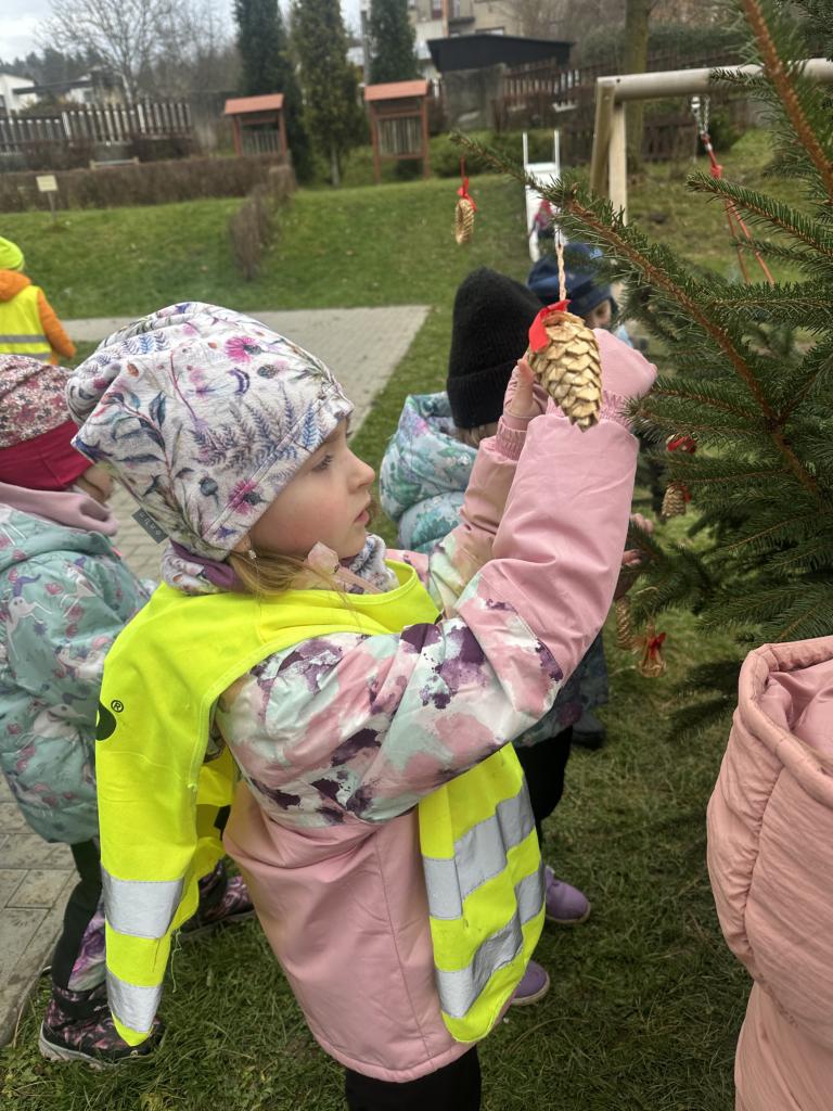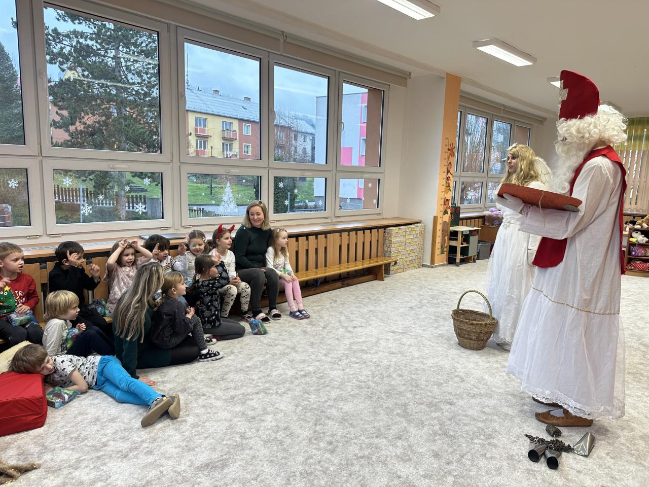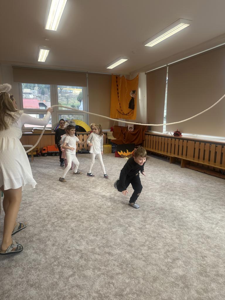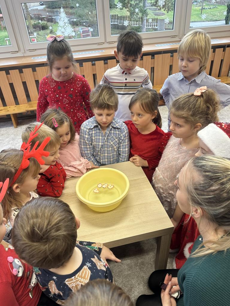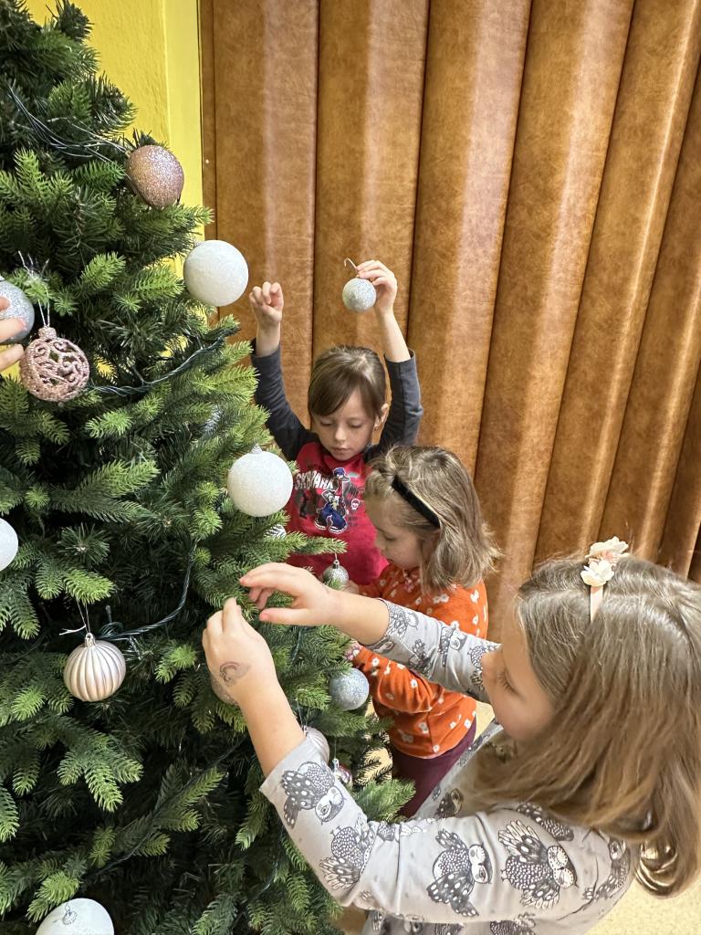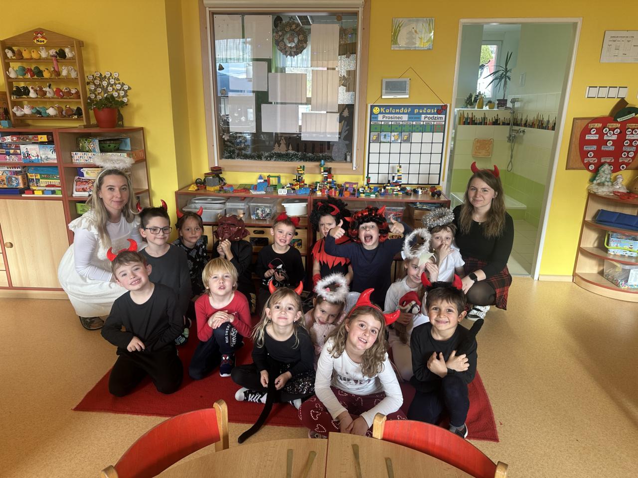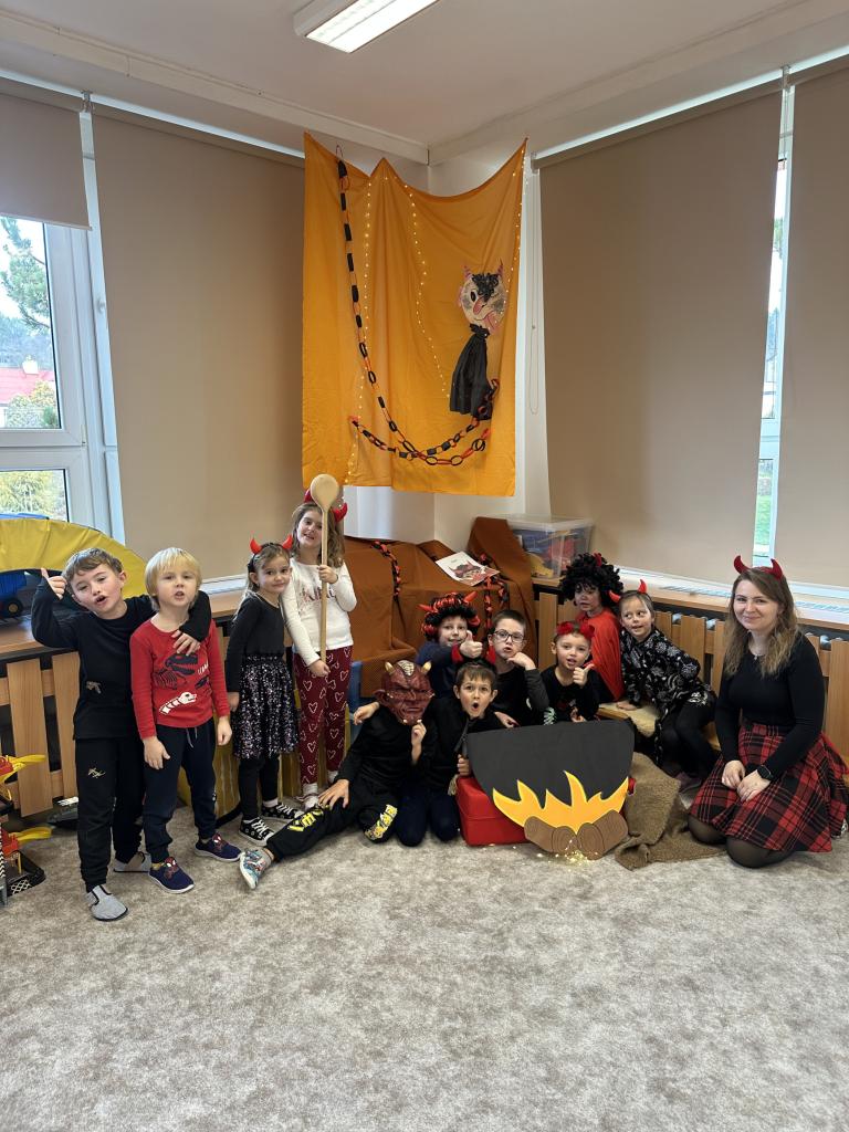 Prosinec byl pro nás plný zážitků. Přišel k nám Mikuláš se svou družinou, naštěstí si nikoho z nás neodnesl čert. Děti také mohly přijít v kostýmu čertíka, anděla nebo Mikuláše. Společně jsme si užili krásné dopoledne plné her. Navštívili nás také skřítci - pomocníčci Ježíška. Skřítci kontrolovali, jestli si ve školce umí děti hezky hrát a pomáhat si. V předvánočním čase jsme se učili koledy, zkoušeli si různé tradice a čekali na příchod Ježíška. Užili jsme si spolu krásný adventní čas . Ježíšek k nám opravdu přletěl a přinesl nám překrásné dárečky.