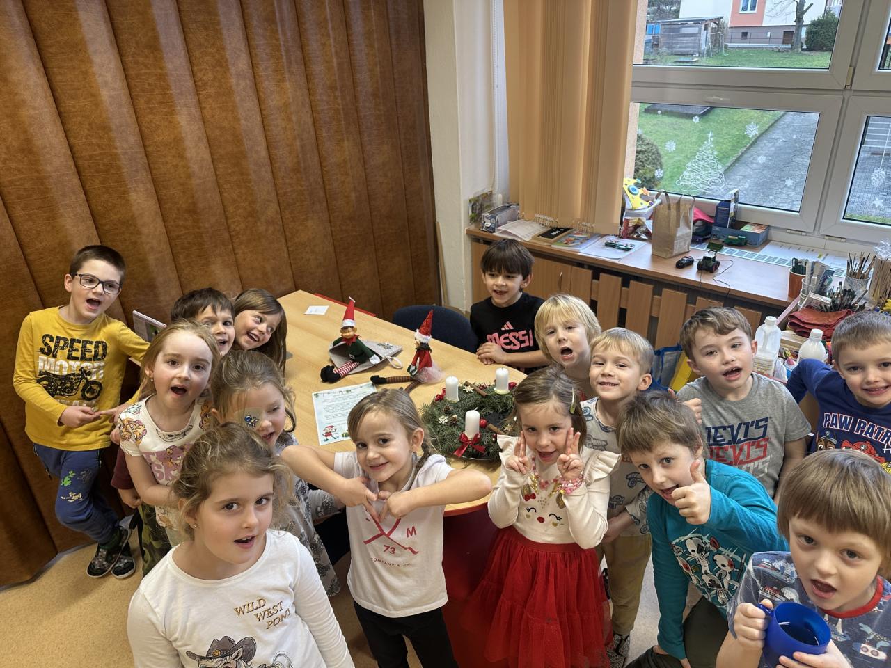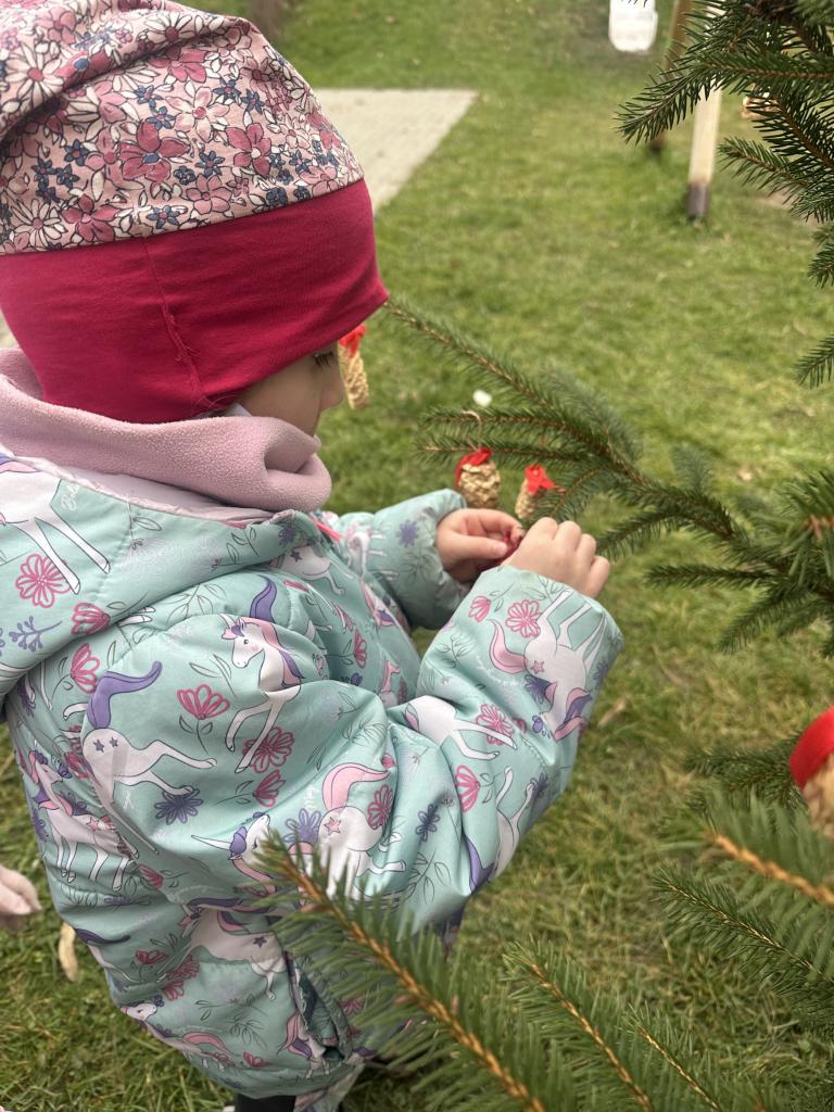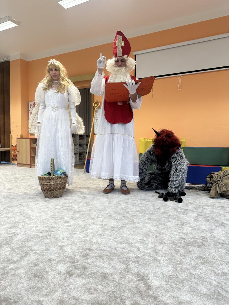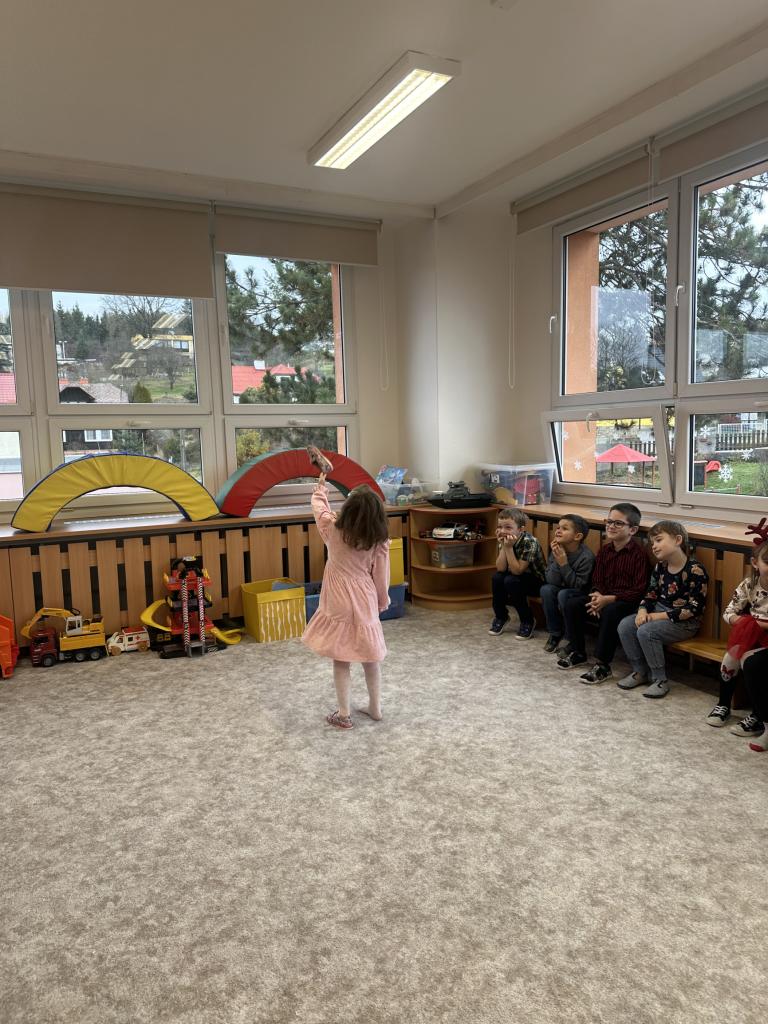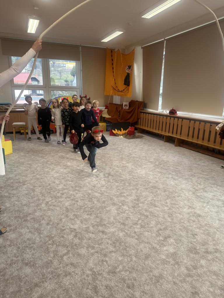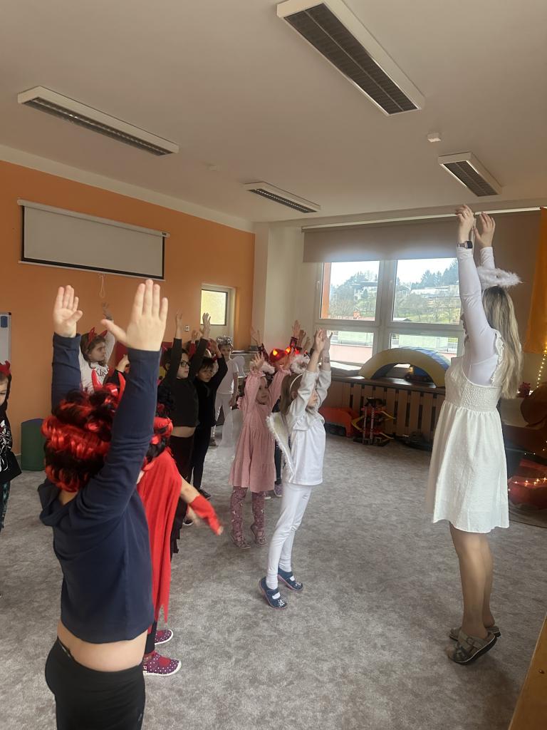 Prosinec byl pro nás plný zážitků. Přišel k nám Mikuláš se svou družinou, naštěstí si nikoho z nás neodnesl čert. Děti také mohly přijít v kostýmu čertíka, anděla nebo Mikuláše. Společně jsme si užili krásné dopoledne plné her. Navštívili nás také skřítci - pomocníčci Ježíška. Skřítci kontrolovali, jestli si ve školce umí děti hezky hrát a pomáhat si. V předvánočním čase jsme se učili koledy, zkoušeli si různé tradice a čekali na příchod Ježíška. Užili jsme si spolu krásný adventní čas . Ježíšek k nám opravdu přletěl a přinesl nám překrásné dárečky.