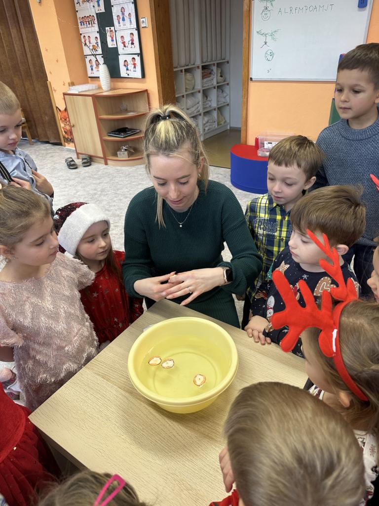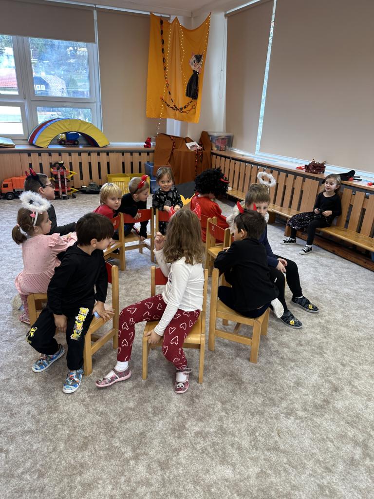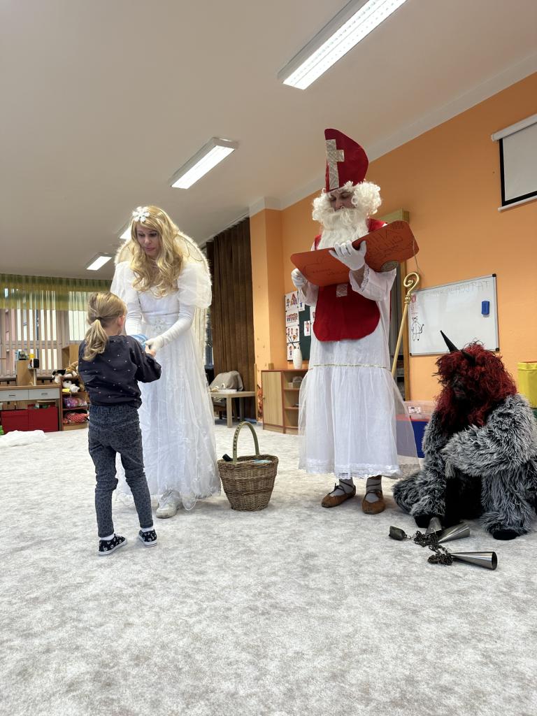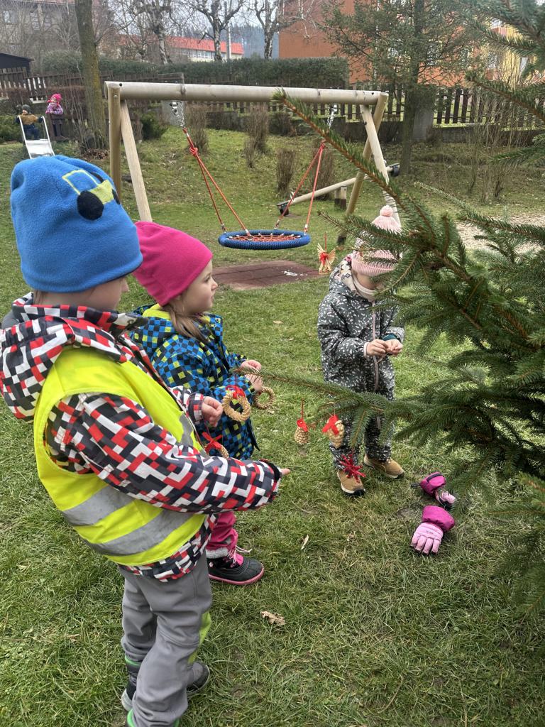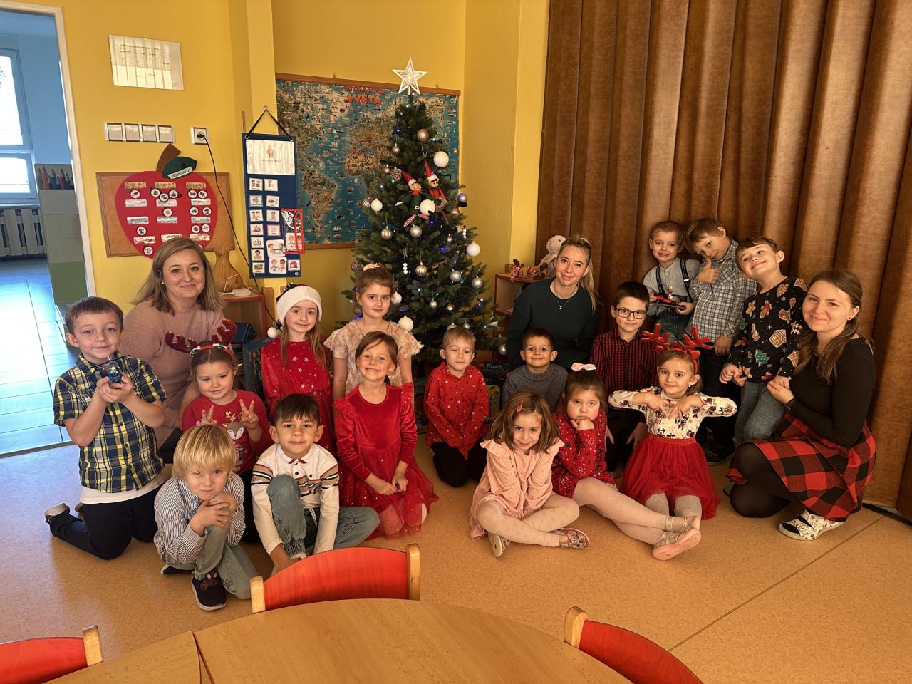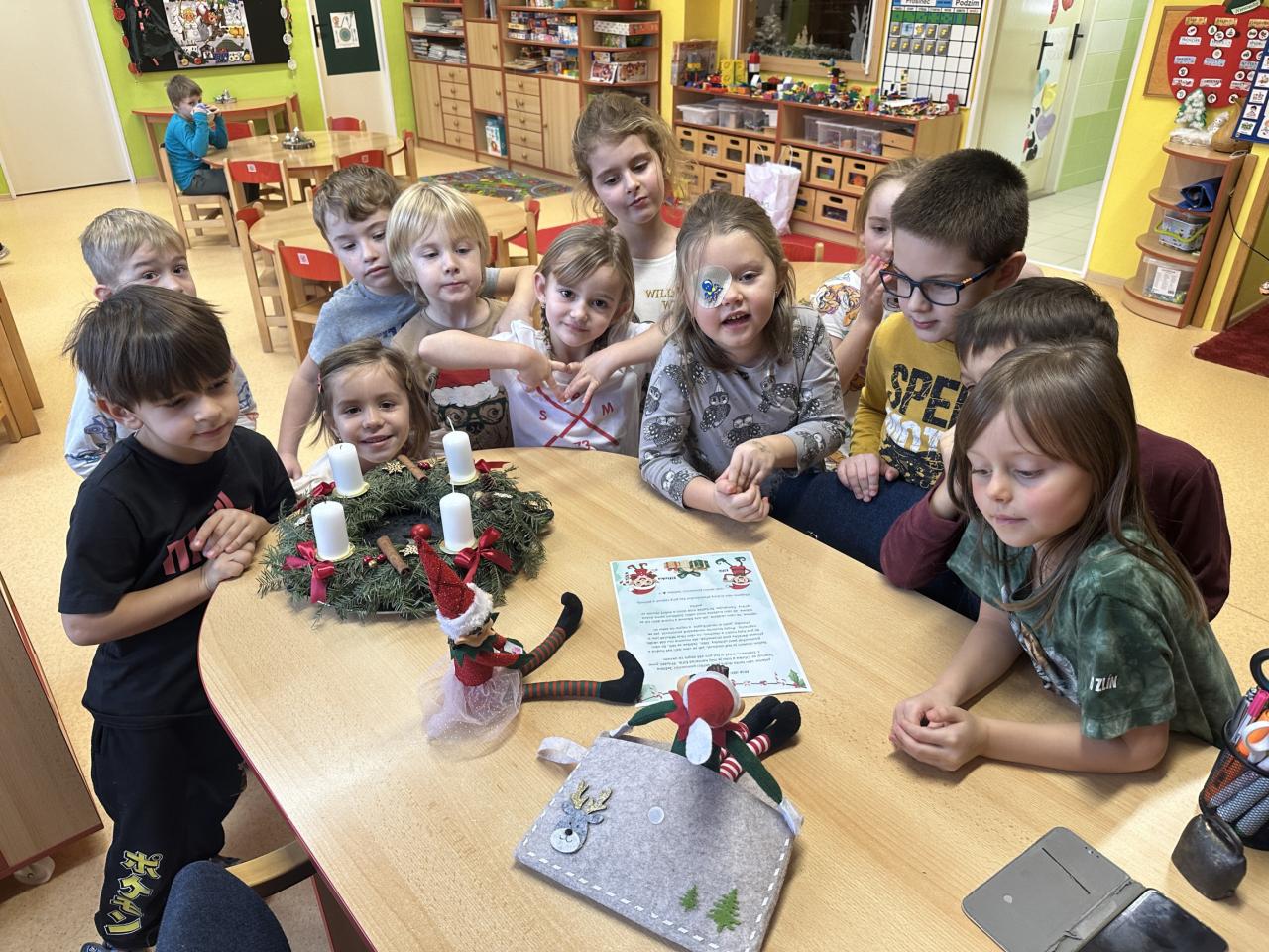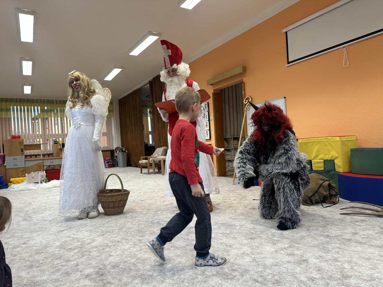 Prosinec byl pro nás plný zážitků. Přišel k nám Mikuláš se svou družinou, naštěstí si nikoho z nás neodnesl čert. Děti také mohly přijít v kostýmu čertíka, anděla nebo Mikuláše. Společně jsme si užili krásné dopoledne plné her. Navštívili nás také skřítci - pomocníčci Ježíška. Skřítci kontrolovali, jestli si ve školce umí děti hezky hrát a pomáhat si. V předvánočním čase jsme se učili koledy, zkoušeli si různé tradice a čekali na příchod Ježíška. Užili jsme si spolu krásný adventní čas . Ježíšek k nám opravdu přletěl a přinesl nám překrásné dárečky.