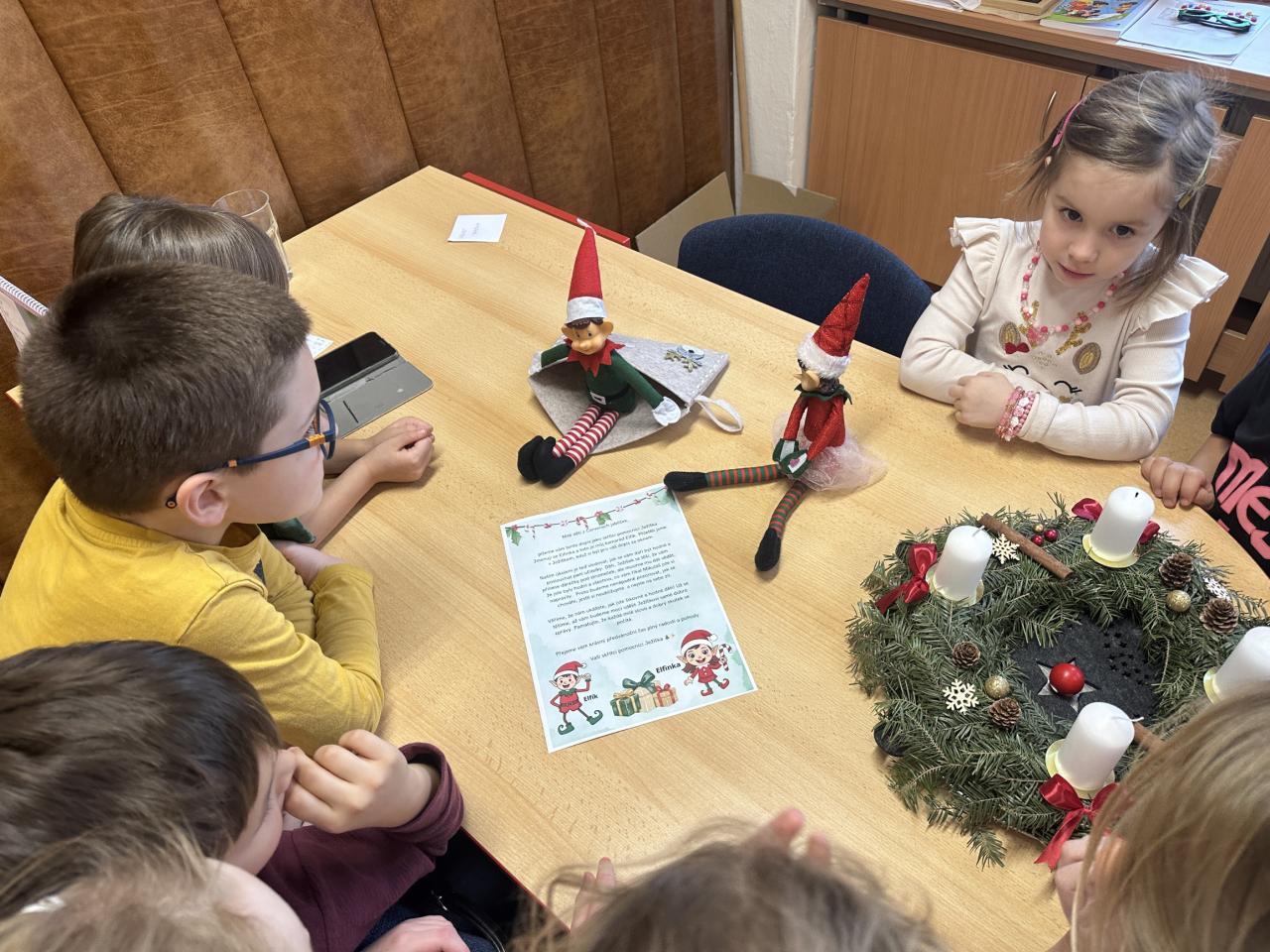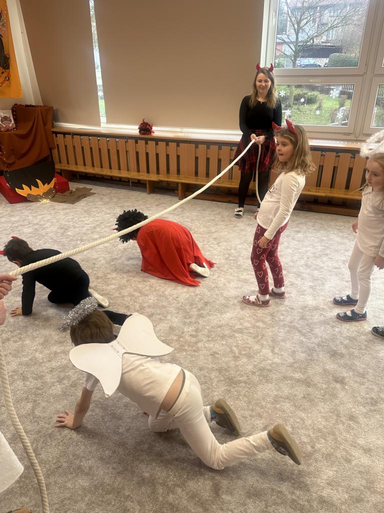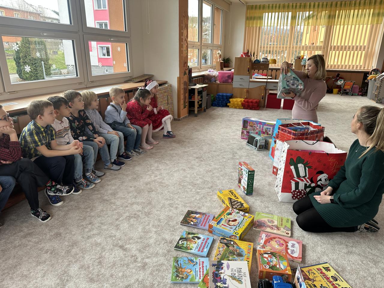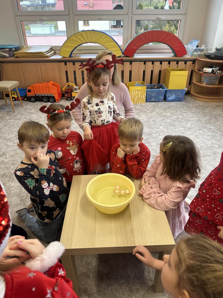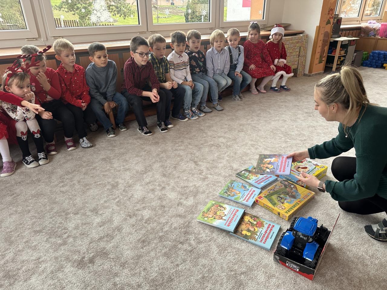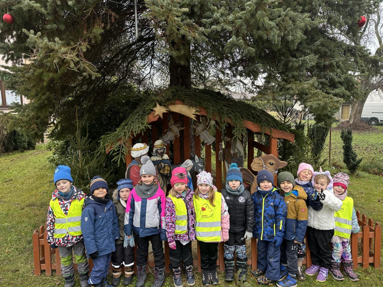 Prosinec byl pro nás plný zážitků. Přišel k nám Mikuláš se svou družinou, naštěstí si nikoho z nás neodnesl čert. Děti také mohly přijít v kostýmu čertíka, anděla nebo Mikuláše. Společně jsme si užili krásné dopoledne plné her. Navštívili nás také skřítci - pomocníčci Ježíška. Skřítci kontrolovali, jestli si ve školce umí děti hezky hrát a pomáhat si. V předvánočním čase jsme se učili koledy, zkoušeli si různé tradice a čekali na příchod Ježíška. Užili jsme si spolu krásný adventní čas . Ježíšek k nám opravdu přletěl a přinesl nám překrásné dárečky.
