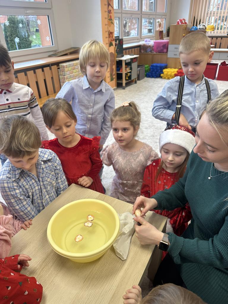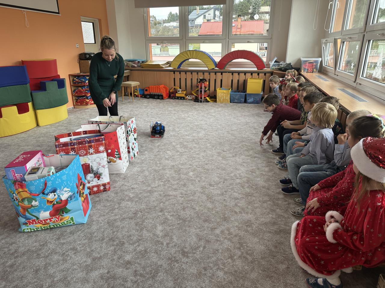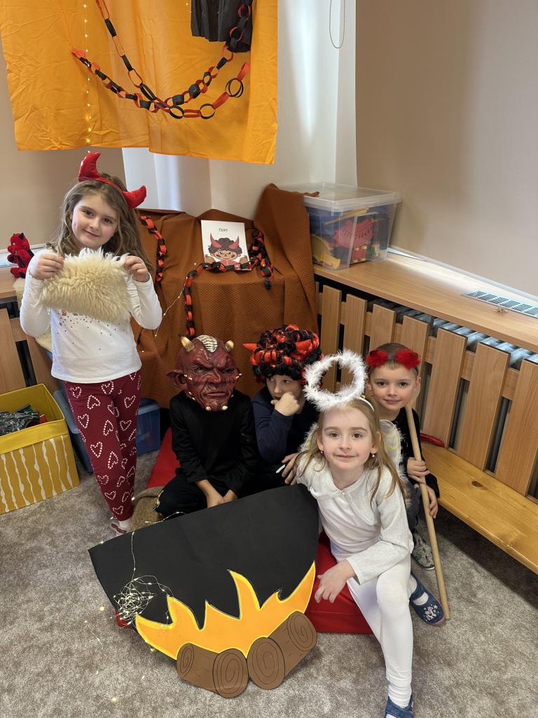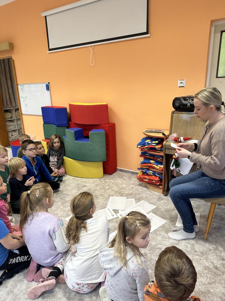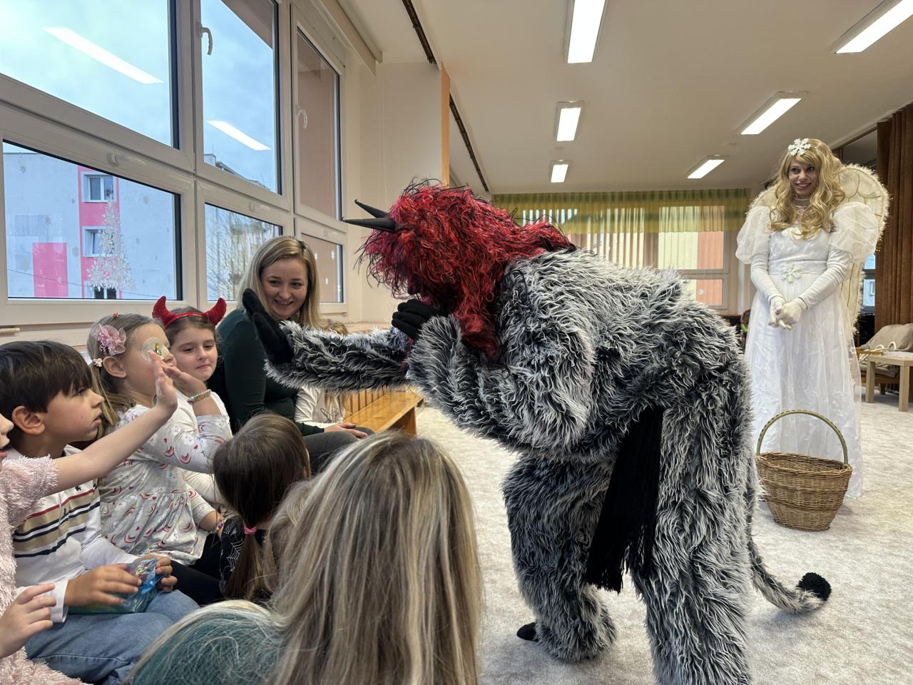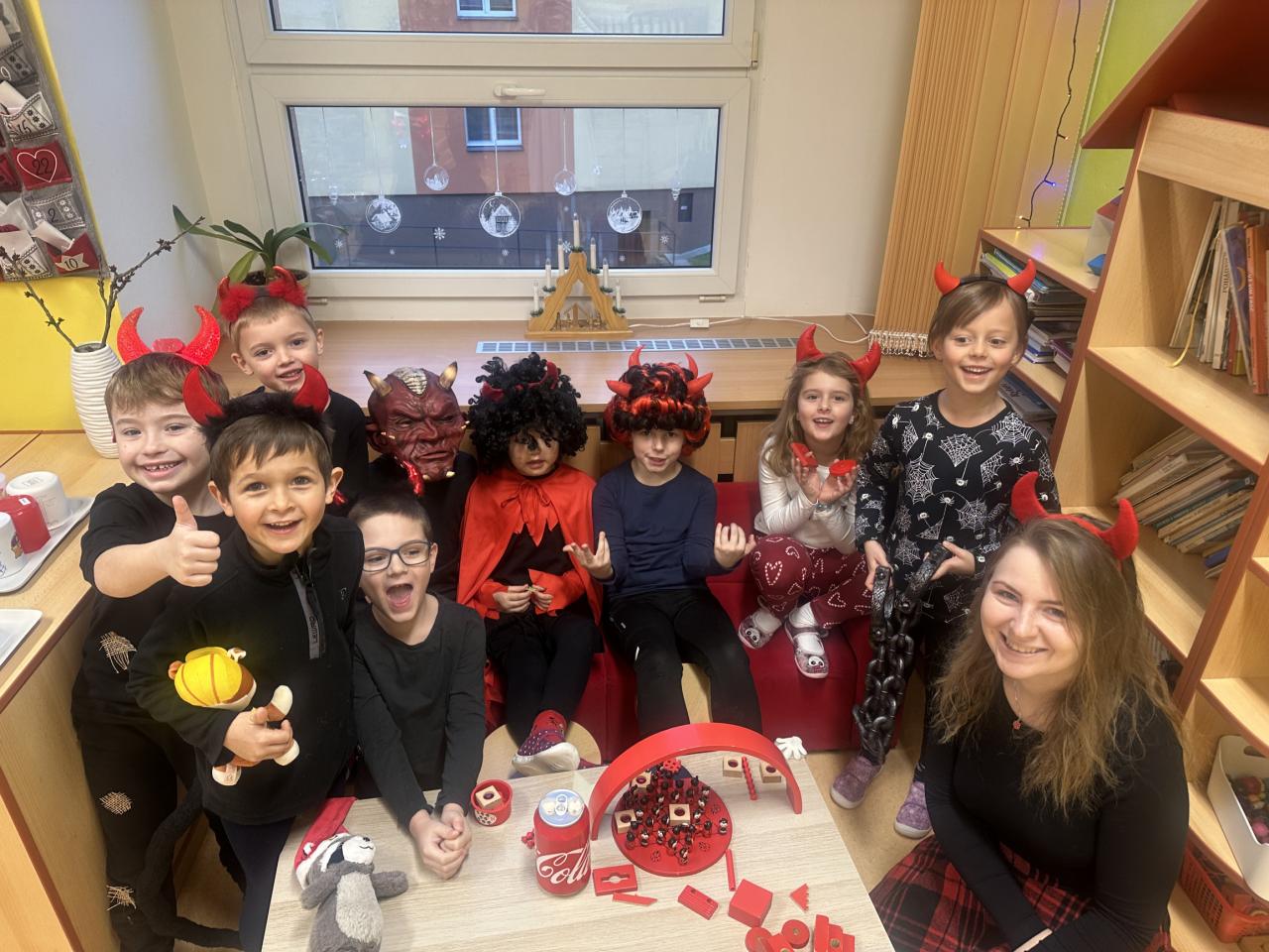 Prosinec byl pro nás plný zážitků. Přišel k nám Mikuláš se svou družinou, naštěstí si nikoho z nás neodnesl čert. Děti také mohly přijít v kostýmu čertíka, anděla nebo Mikuláše. Společně jsme si užili krásné dopoledne plné her. Navštívili nás také skřítci - pomocníčci Ježíška. Skřítci kontrolovali, jestli si ve školce umí děti hezky hrát a pomáhat si. V předvánočním čase jsme se učili koledy, zkoušeli si různé tradice a čekali na příchod Ježíška. Užili jsme si spolu krásný adventní čas . Ježíšek k nám opravdu přletěl a přinesl nám překrásné dárečky.