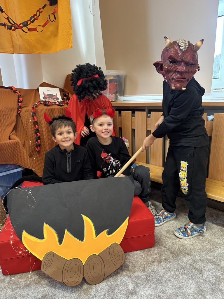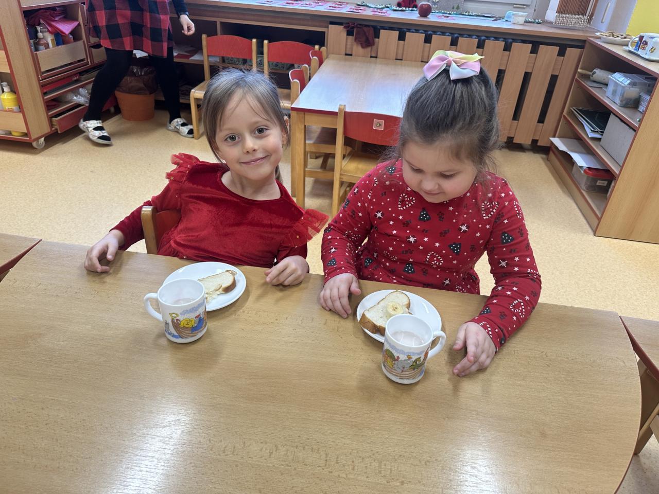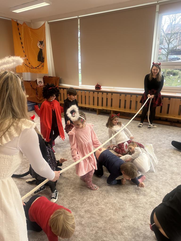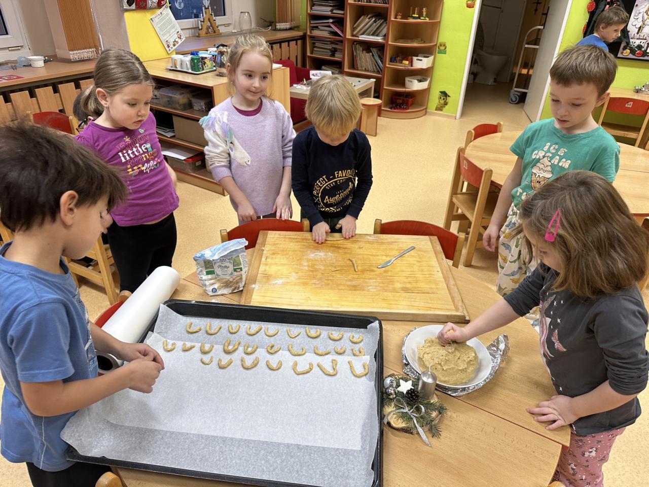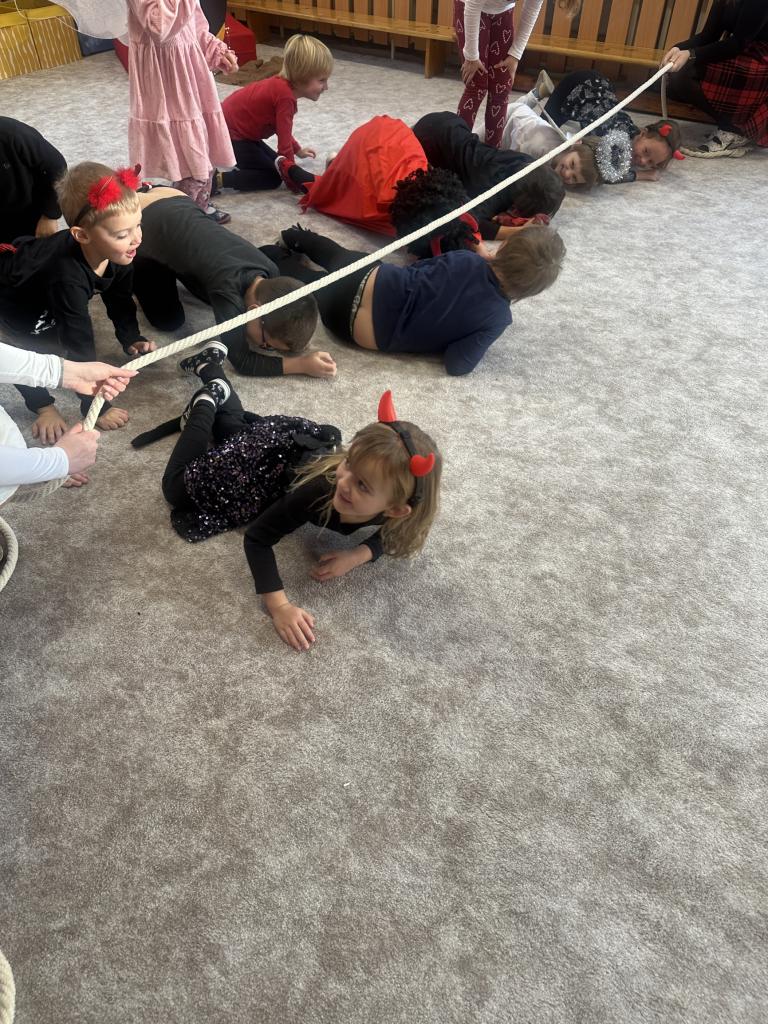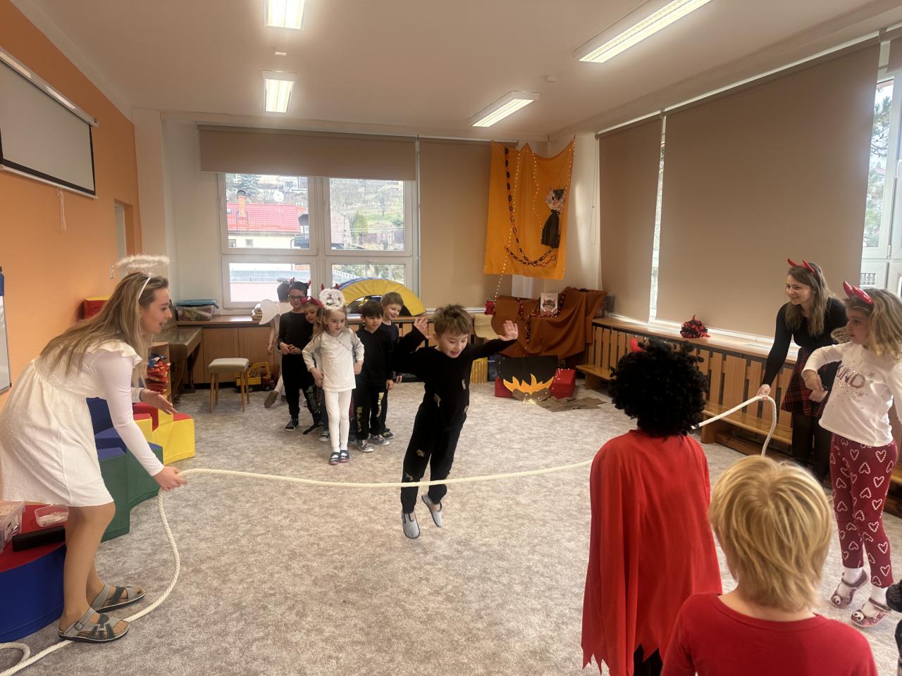 Prosinec byl pro nás plný zážitků. Přišel k nám Mikuláš se svou družinou, naštěstí si nikoho z nás neodnesl čert. Děti také mohly přijít v kostýmu čertíka, anděla nebo Mikuláše. Společně jsme si užili krásné dopoledne plné her. Navštívili nás také skřítci - pomocníčci Ježíška. Skřítci kontrolovali, jestli si ve školce umí děti hezky hrát a pomáhat si. V předvánočním čase jsme se učili koledy, zkoušeli si různé tradice a čekali na příchod Ježíška. Užili jsme si spolu krásný adventní čas . Ježíšek k nám opravdu přletěl a přinesl nám překrásné dárečky.
