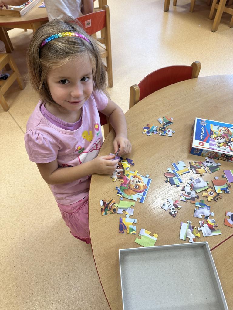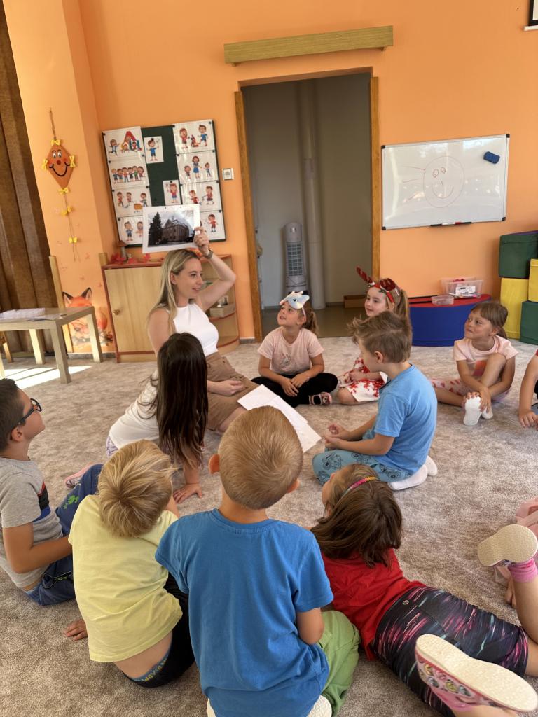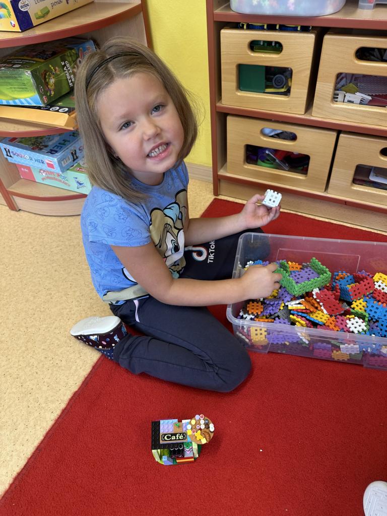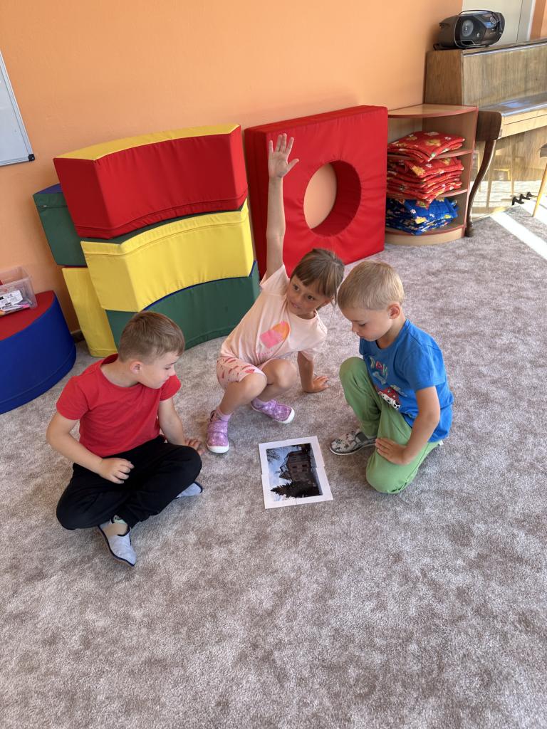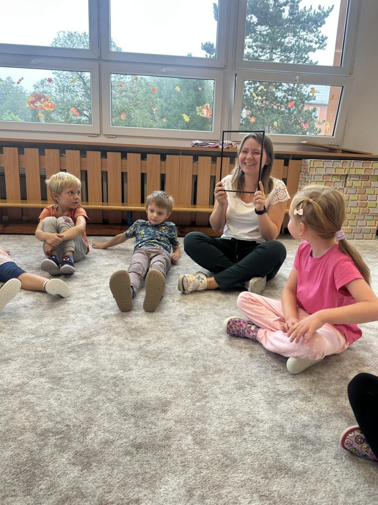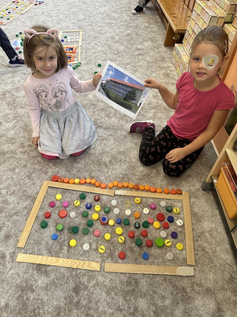 Děti se seznamovaly s novou třídou, prostory a novými hračkami. Připomínali jsme si pravidla třídy, jak se máme správně chovat k sobě, kamarádům a k paním učitelkám. Povídali jsme si o naší Jablůnce a říkali si rozdíly mezi vesnicí a městem.
